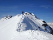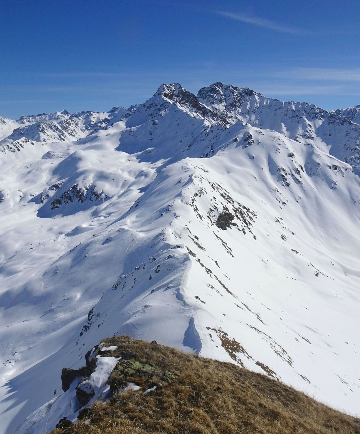 Wetter perfekt. Sonne, kaum Wind und beste Fernsicht. Sehr schöner Aussichtsgipfel auf die höheren Berge ringsum. Wenige Tourengeher im Gebiet unterwegs. Keine Abfahrtsspuren nach Schönboden, einige wenige Richtung Rinertäli. Oberer Gratabstieg hier aper.