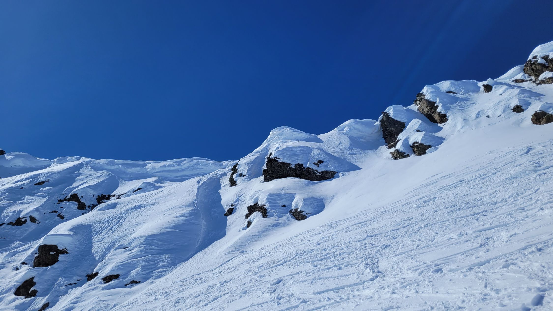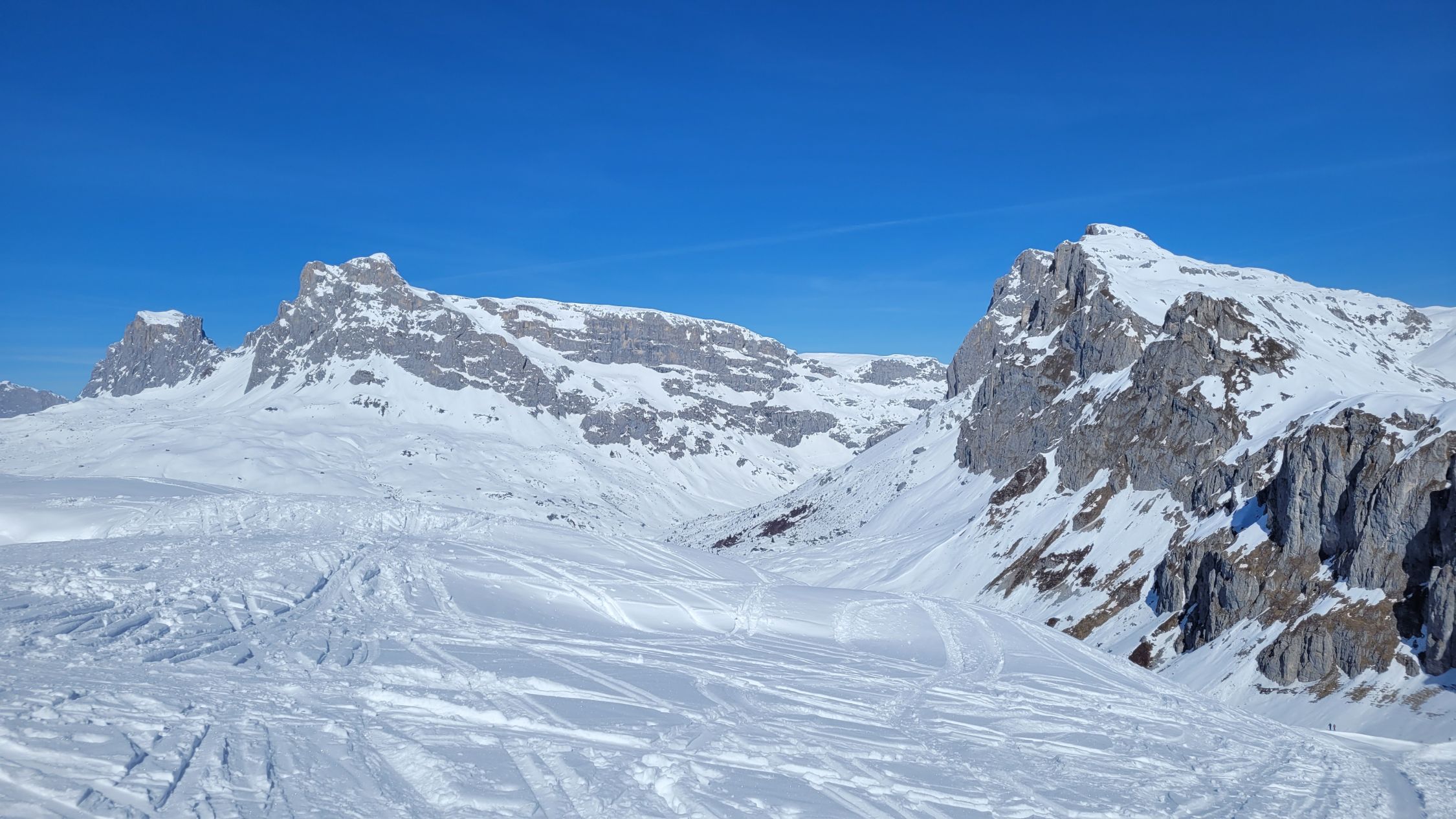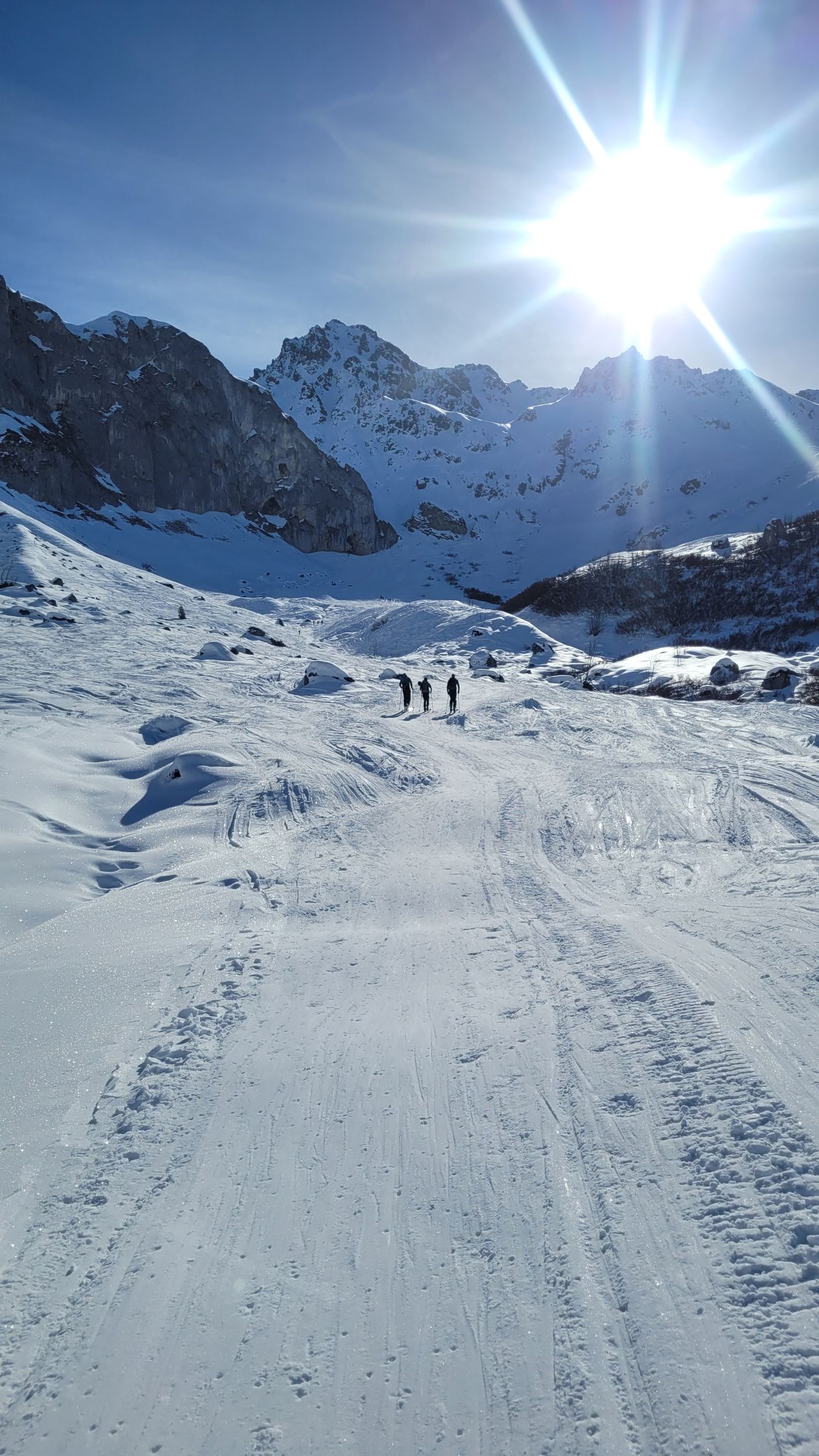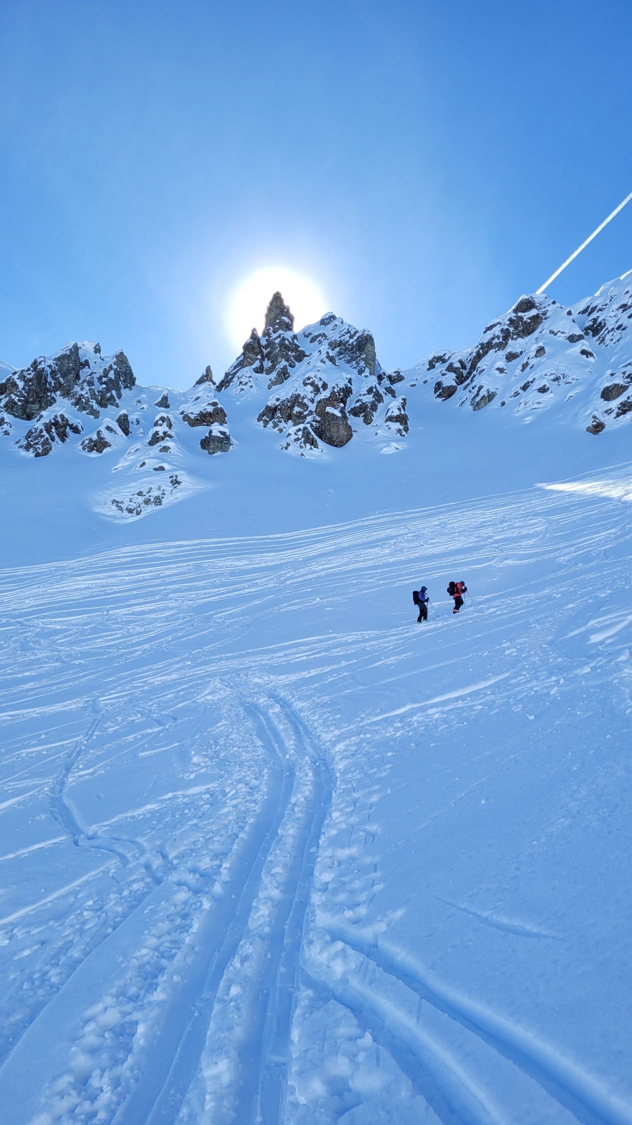 Wir sind das Silbertäli abgefahren, da es noch unverspurte Stellen gab. Viel Powder in der ausgetrockneten Schneedecke.