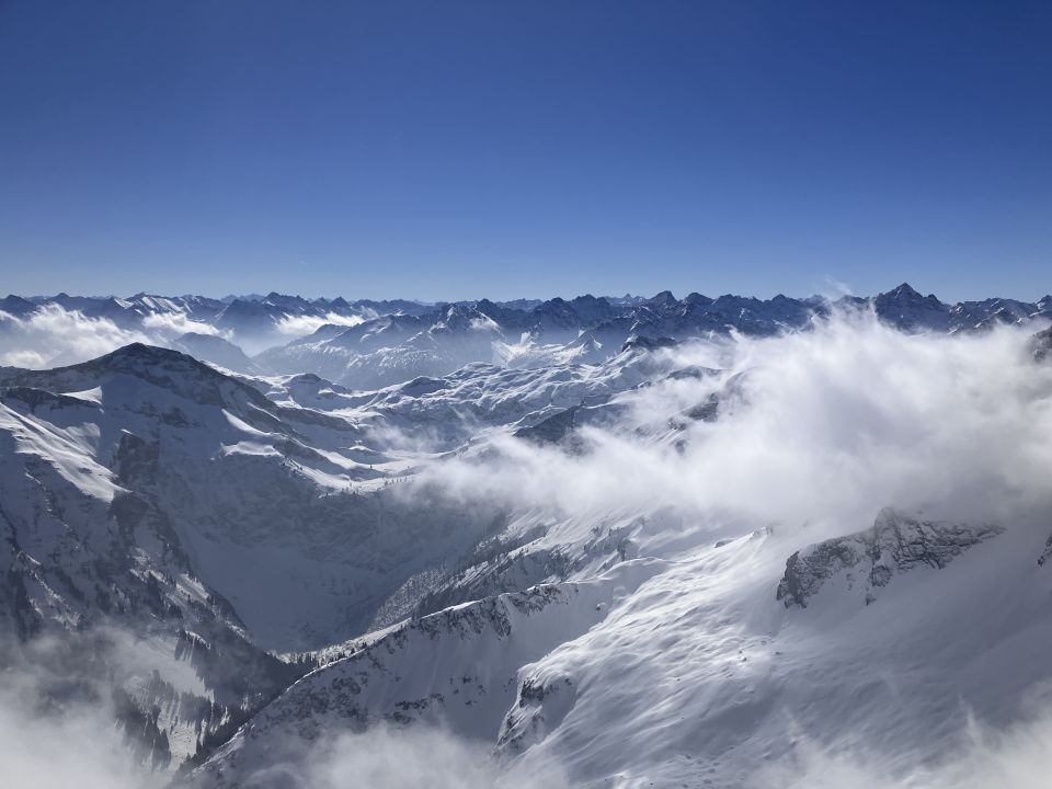 Besser als erwartet, Aufstieg geht gut bis zum Grat. Dann gut eingespurt bis zum Gipfel. Abfaht westlich vom Kreuz direkt nach Norden mit schönem Pulver bis fast zum Älpele. Rest auf Fahrweg besser als Harschgegurke durch den Wald.