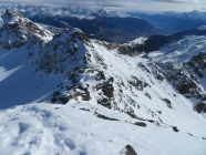 Ganze Route genug Schnee, Pulver auf harter Unterlage. Vom Skidepot auf Gipfel sehr wenig Schnee. Aktuell schwieriger als ZS-. Dadurch einige sehr ausgesetzte Stellen, die gekraxelt werden müssen. Pickel und Steigeisen im Moment Pflicht. Da, wo es Schnee hat auf dem Grat, ist es guten Trittschnee.