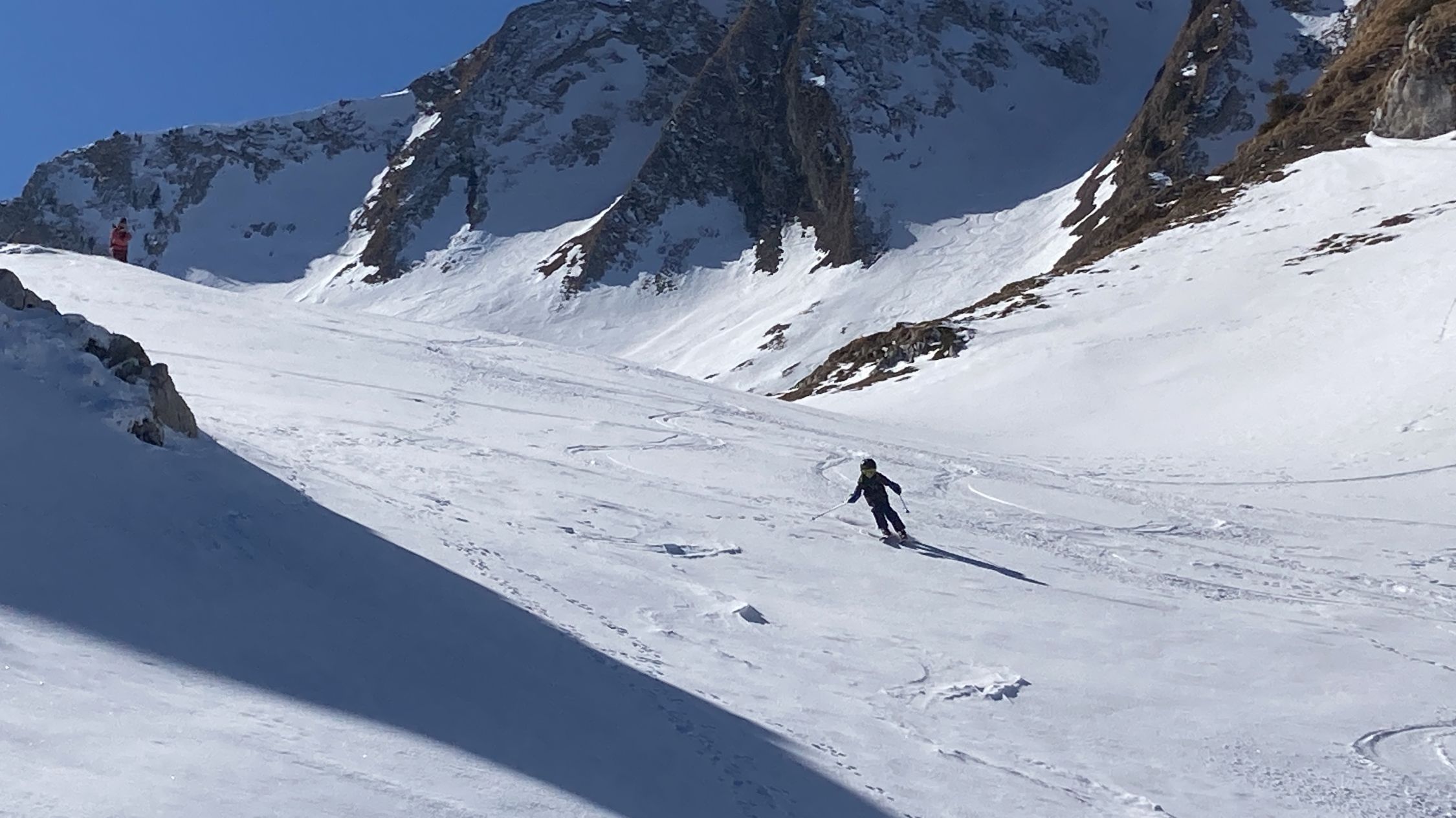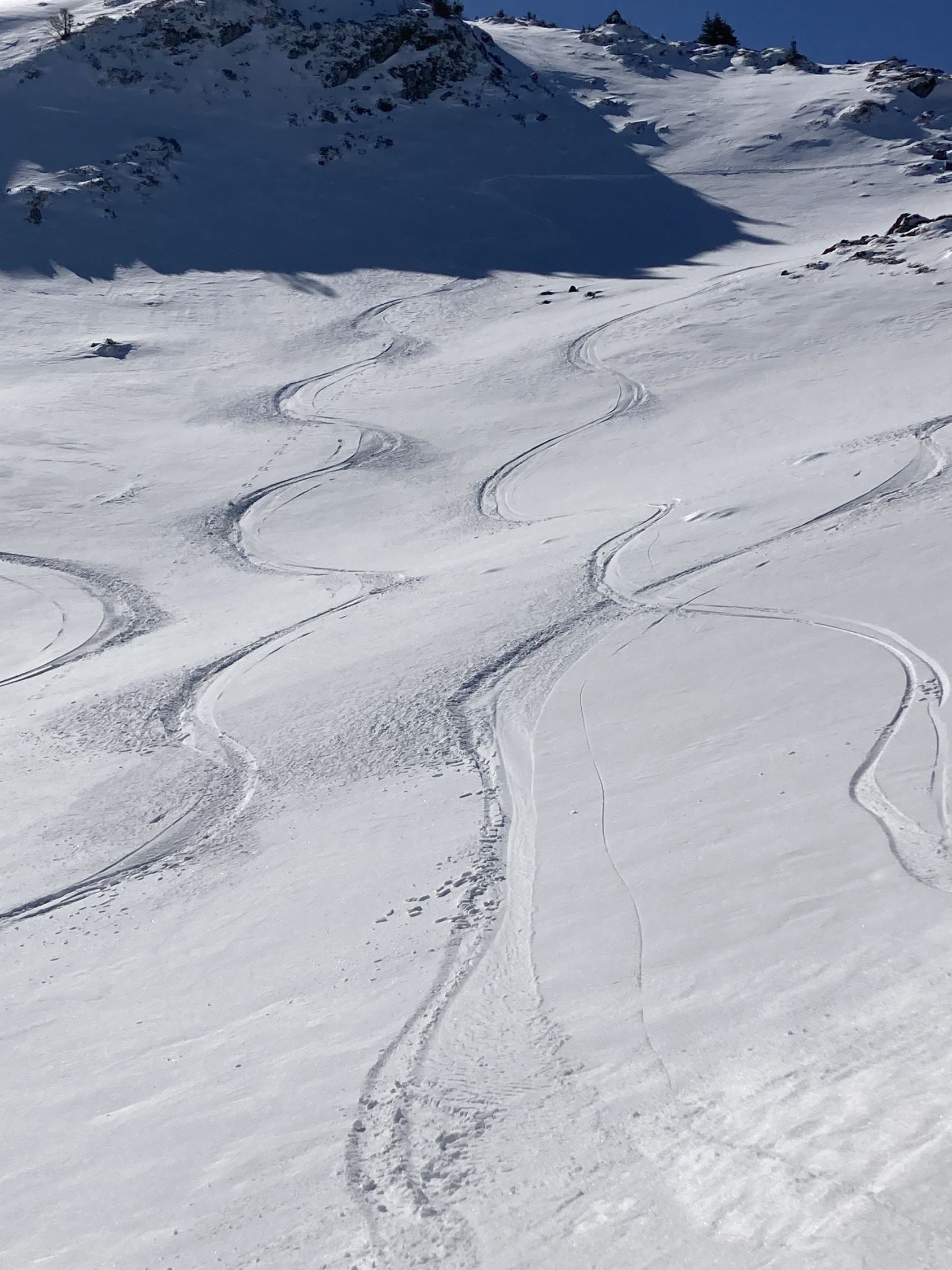 Wunderbare Schnee Verhältnisse für uns. Pulver auf tragender Unterlage.