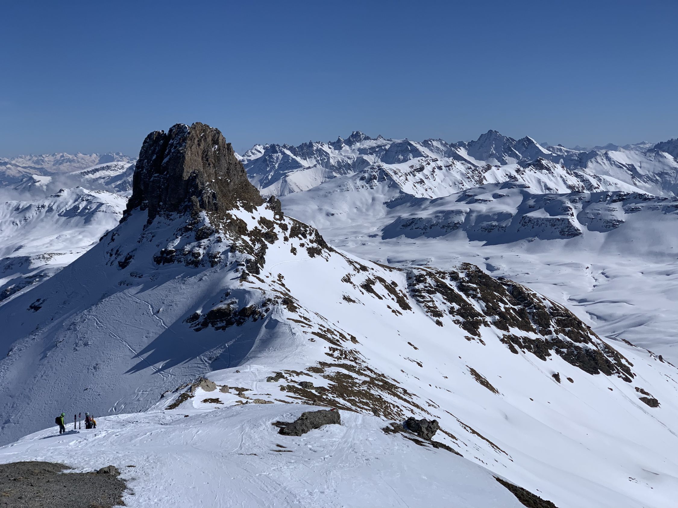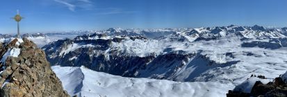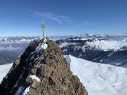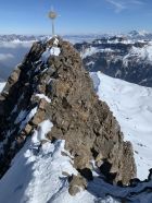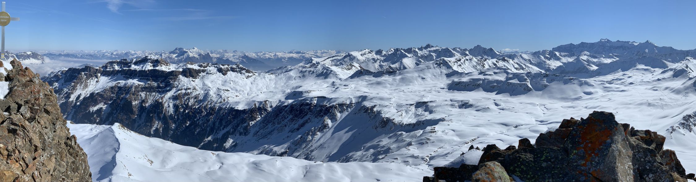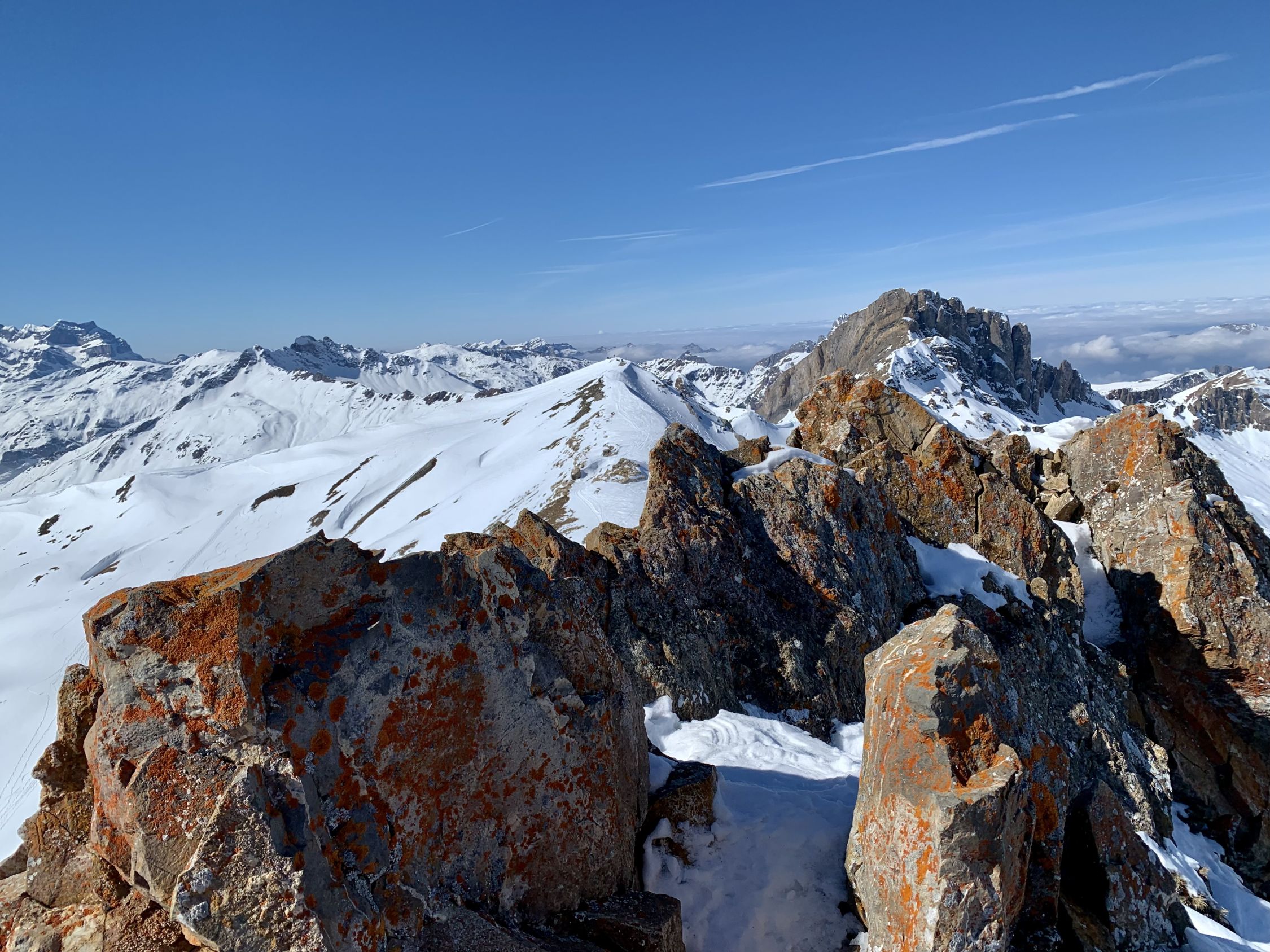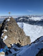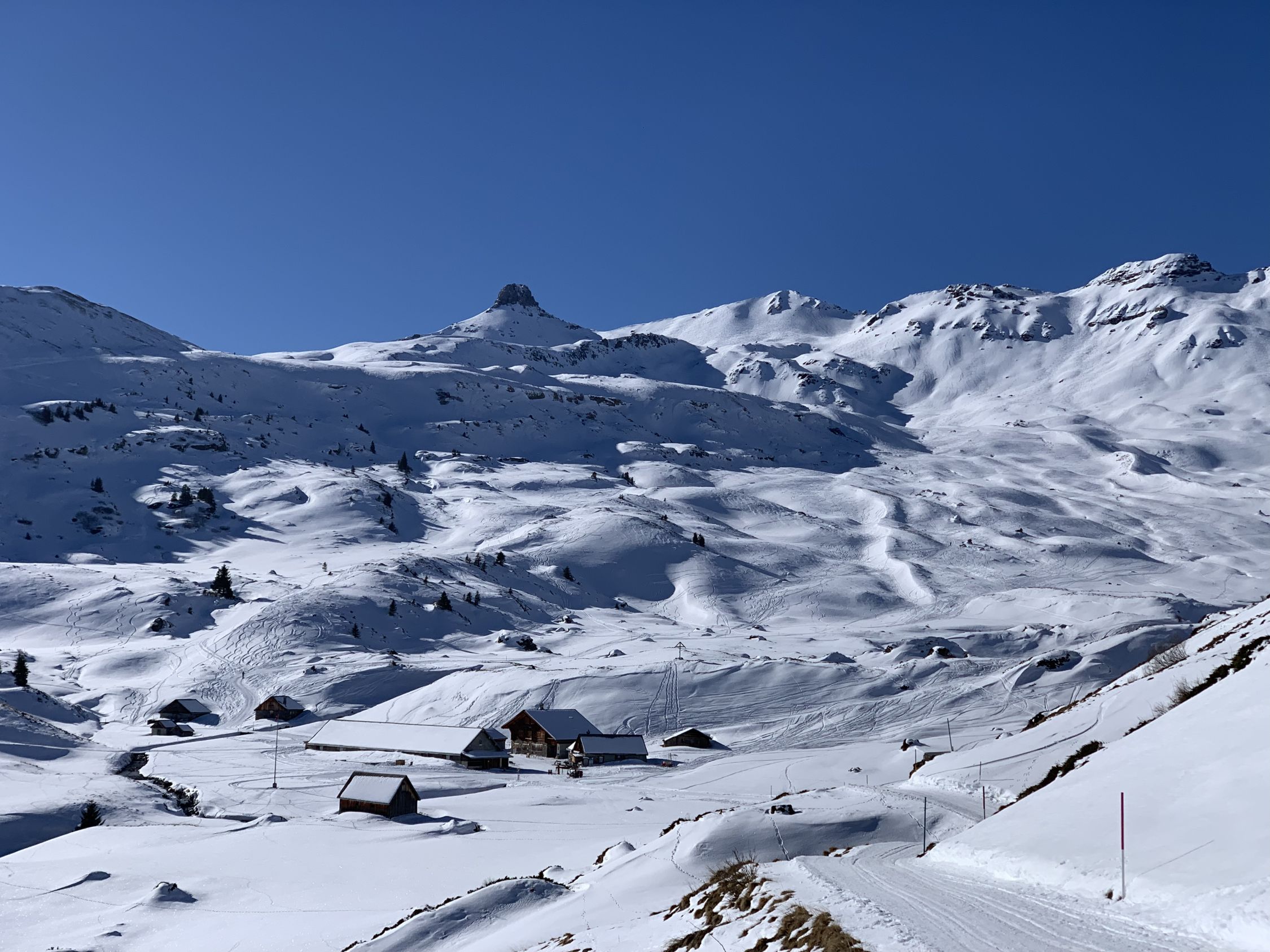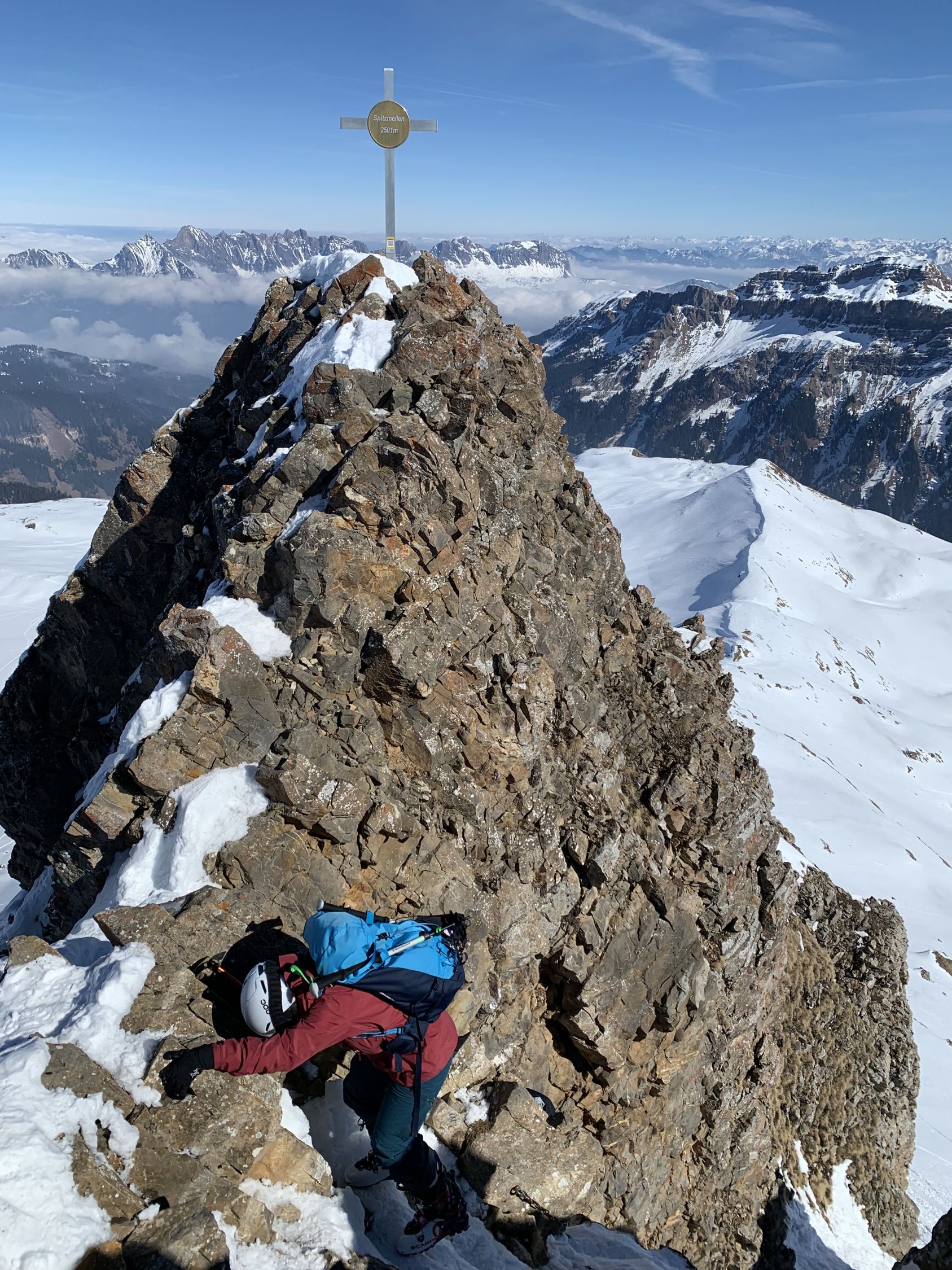 Die Abfahrt (vom Wissmeilen) sehr vergnüglich, gar nicht wenig Pulver, wenn auch gepresst usw. Dafür hat es so viel Platz .. Dann noch perfektes Wetter, Wind am Pass, dafür windstill am Gipfel, das reicht dann schon für „ausgezeichnet“, oder?