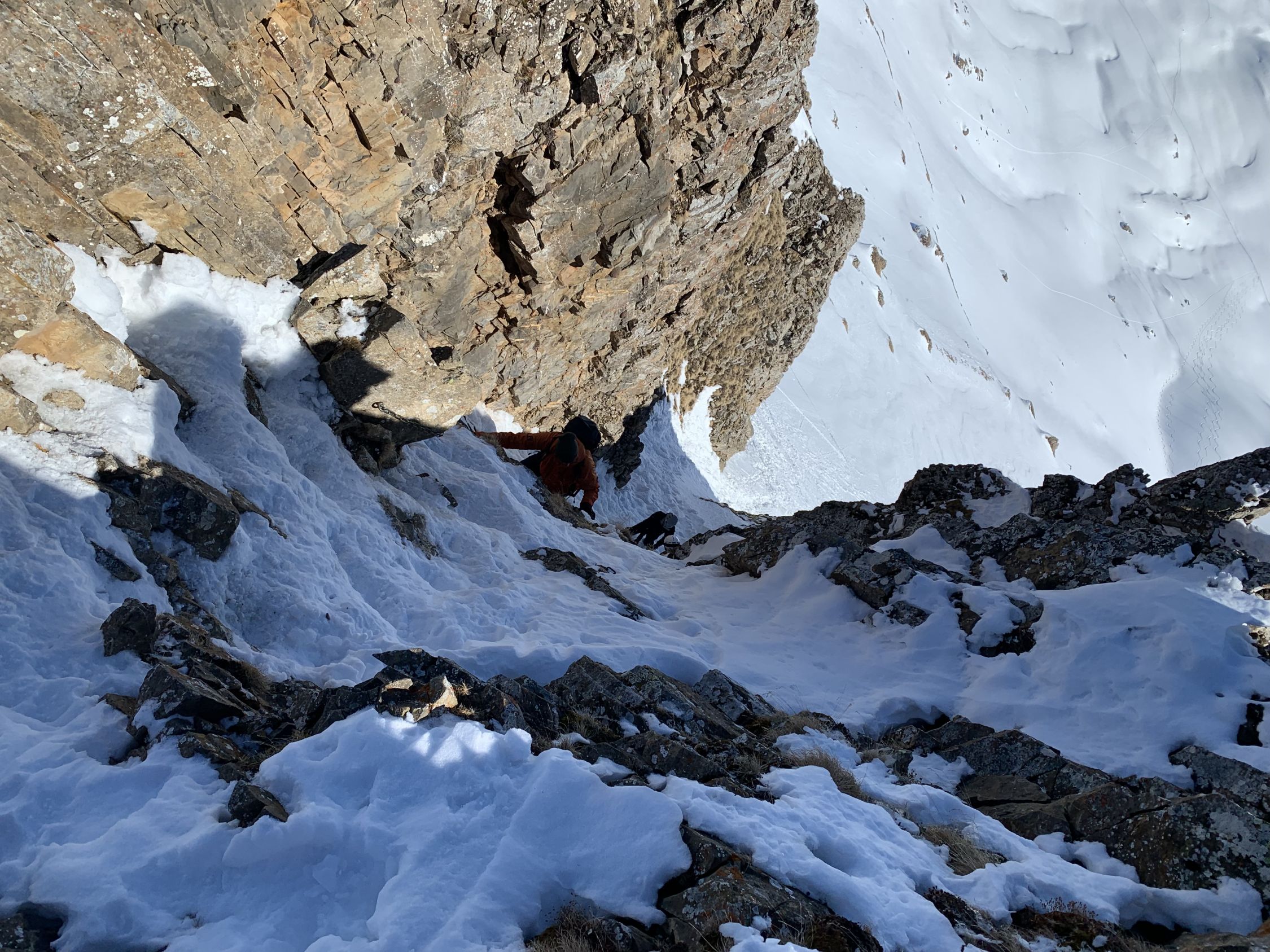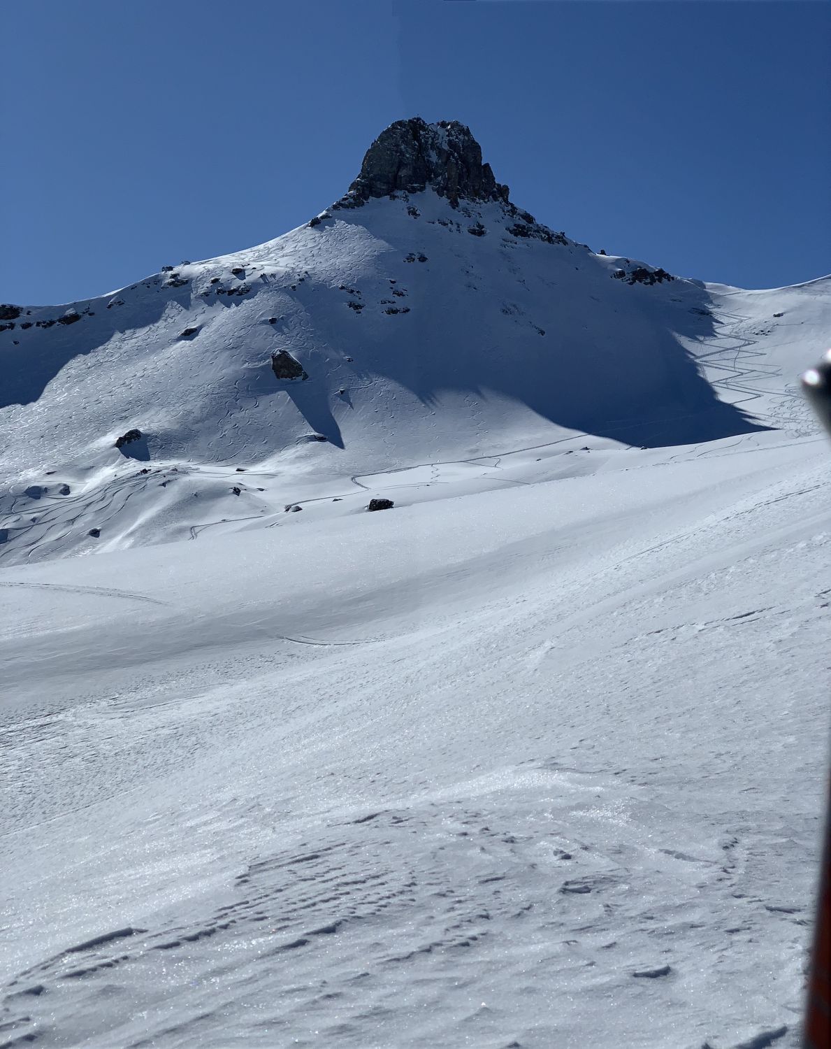 Von der Fursch zum Wissmeilenpass perfekte Spur. Der Aufstieg in der Rinne etwas abgenudelt, aber griffig und gut zu gehen, am besten mit ein paar Zacken am Schuh. Oben schneearm, Ketten frei.