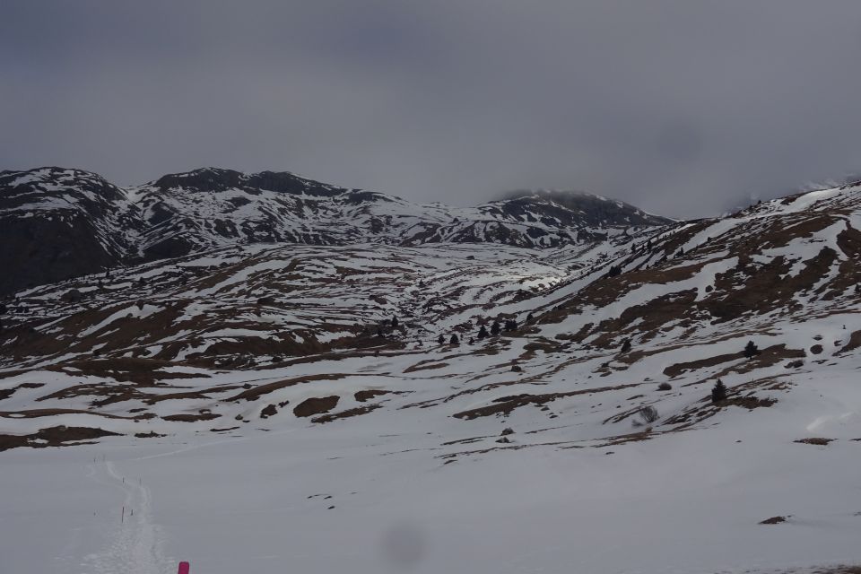 Gestartet ab der Alp Flix. Dort herrschen bereits Frühlingsverhältnisse. Es hat generell sehr wenig Schnee im Gebiet; mit Skiern macht das kaum noch Spass. Wir haben deshalb auf Schneeschuhe umgesattelt und sind mit diesen bis unter die Westflanke durchgelaufen. Das Couloir hatte bis oben griffigen Schnee.