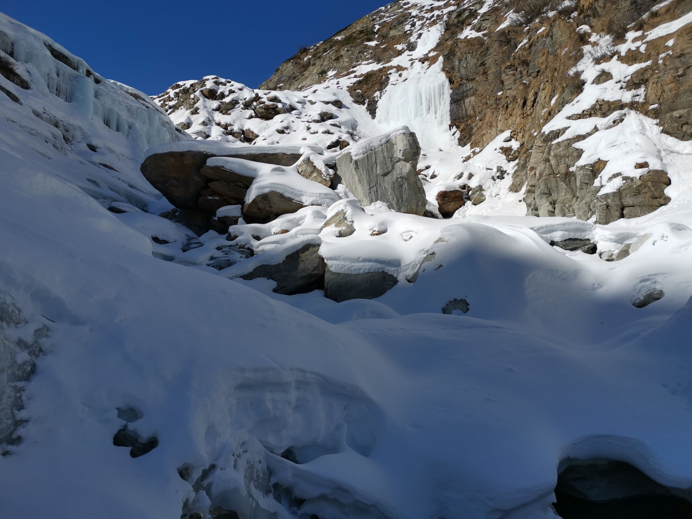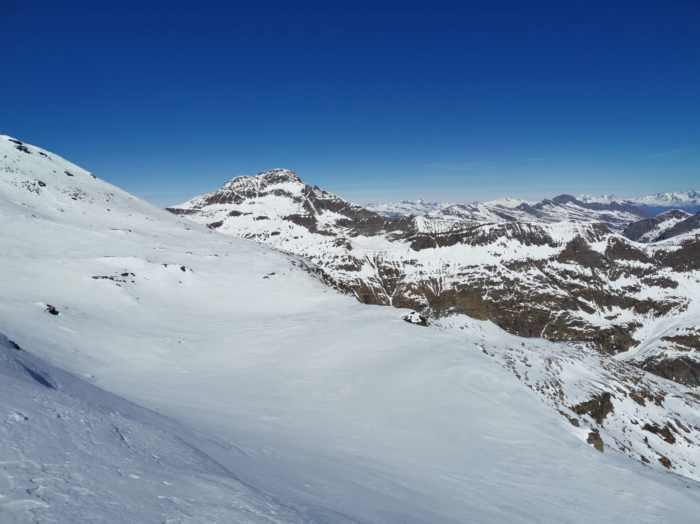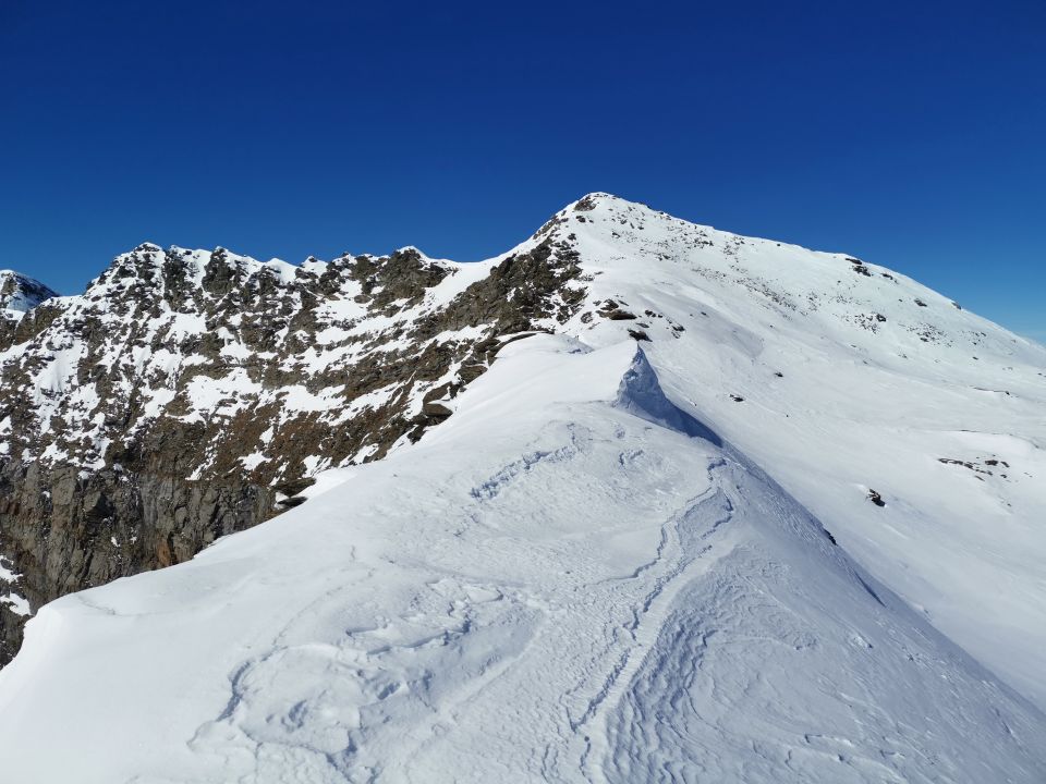 Von der Zapporthütte dirket runter über den Rhein und übers Paradis zum Gratansatz vom Rheinquellhorn. Durch das Couli hoch. Umkehr auf ca. 3146. Die tiefe Spapferi zum Gipfel hab ich mir heute gespart.
