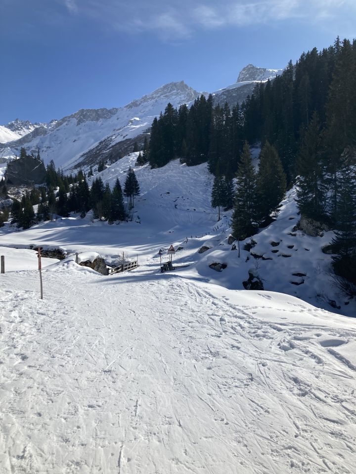 Haben unmittelbar neben den Lawinenverbauungen unter dem Gipfel noch schönen Powder gefunden. Bis Säss sehr gut, bis ca. 1800 gut, danach ruppig und/oder pistenartig ausgefahren.