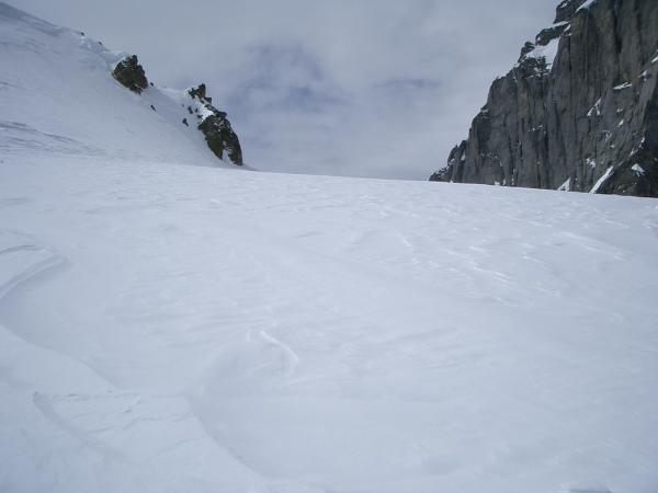 Oberen Teil: verwindeter Hartschnee.