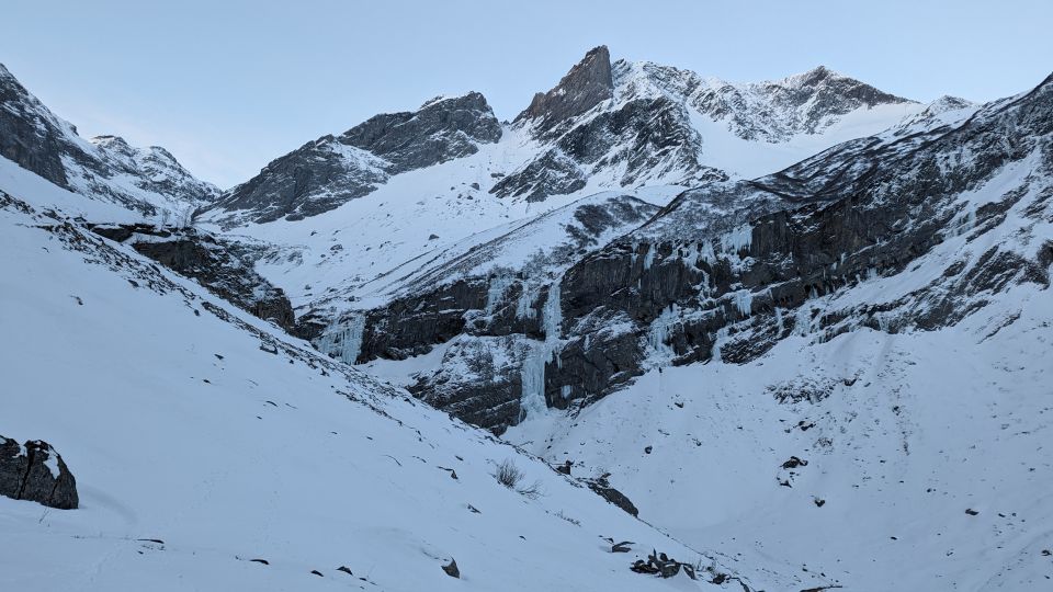 Bis Oberstafel liegt zur Zeit wenig und vor allem hartgepresster Schnee. Ab Oberstafel verbessern sich die Bedingungen dann zunehmend. Bei der kurzen "Gehpassage" oberhalb vom Walenboden ist Vorsicht geboten und Harscheisen erleichterten die Stelle.