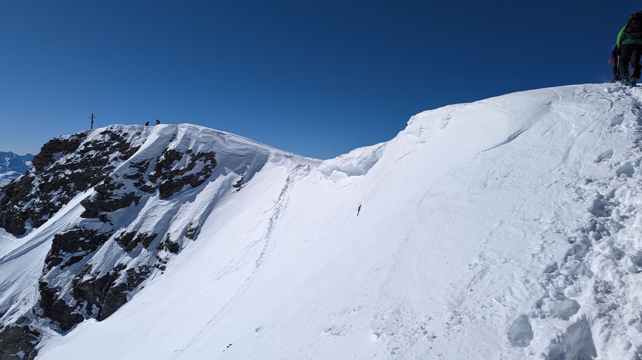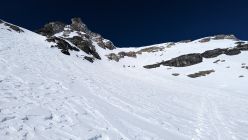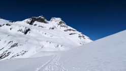 Kurz vor dem Panixerpass waren sogar noch einige unverspurte Pulverhänge vorhanden. Das Skitdepot machten wir ca. 100m unterhalb des Gipfels. Beim Gipfelanstieg waren gute Trittschneespuren vorhanden und der steile Gipfelzustieg somit gut machbar.
