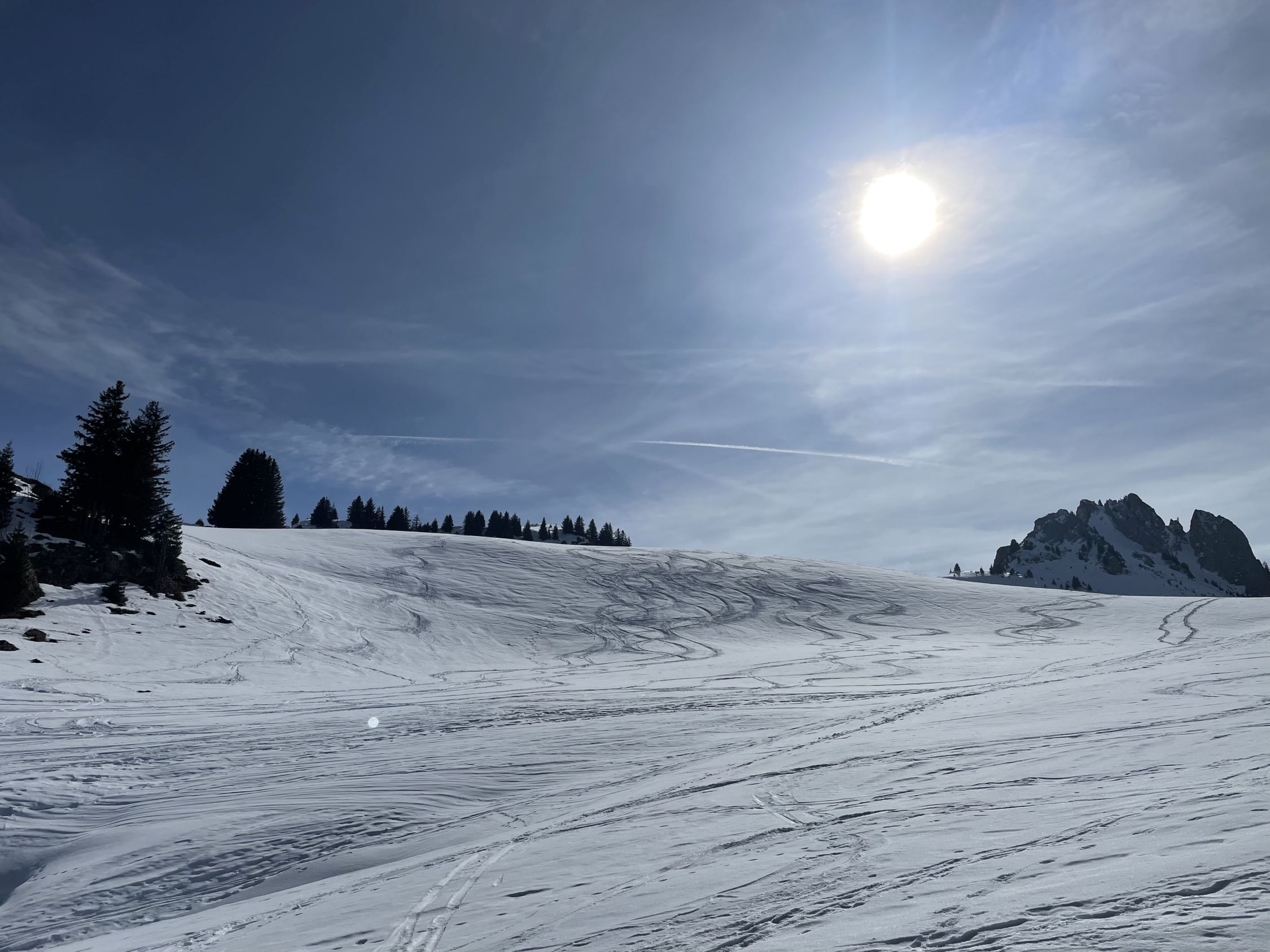 Heute durfte ich nochmals von den aktuellen tollen Verhältnissen profitieren. Ich ging auf Niderhorn, Gestelegrat und Puur. Auto bis kurz unterhalb Brätliplatz, dann bitz tragen und los. Erstaunlich wenig Spuren im Gebiet und praktisch keine Leute, ich traf bloss zwei Schneeschuhgänger am Niderhorn. Sonst solo. Der Aufstieg aufs Niderhorn geht nur noch ganz knapp durchs Chelli, und die Abfahrt ist nicht besonders. Aber dann nach dem Wiederaufstieg zum Gestelegrat guter Firn und am Puur wunderbares Pülverli. Störend war einzig der starke Westwind, aber das ist Jammern auf höchstem Niveau.