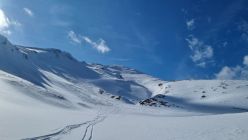 Gute Spur bis zum Gipfel. Vom Parkplatz durchgehend mit Ski entlang des Rabiusa Bachs bis hinauf in die Mulde auf 2200m (Weggabelung zu Safierberg) eher nur ein "machbar" als ein gut. Sehr viele Steine und wenig Schnee. In der Abfahrt auf diesem Stück hoch oberhalb des Bachs an den NW-Hängen bleiben (Spur liegt) - dort ist es weitgehend steinfrei.