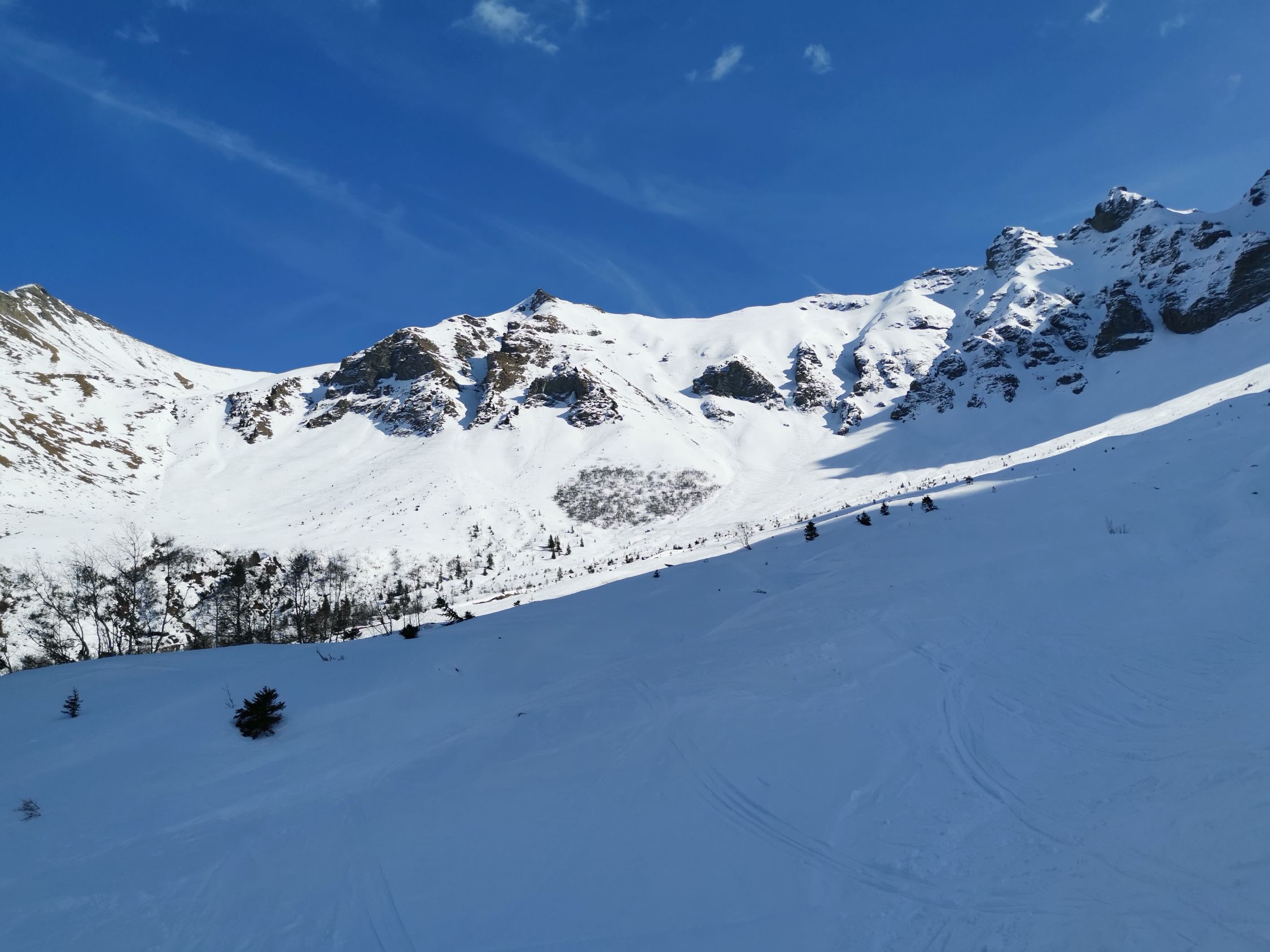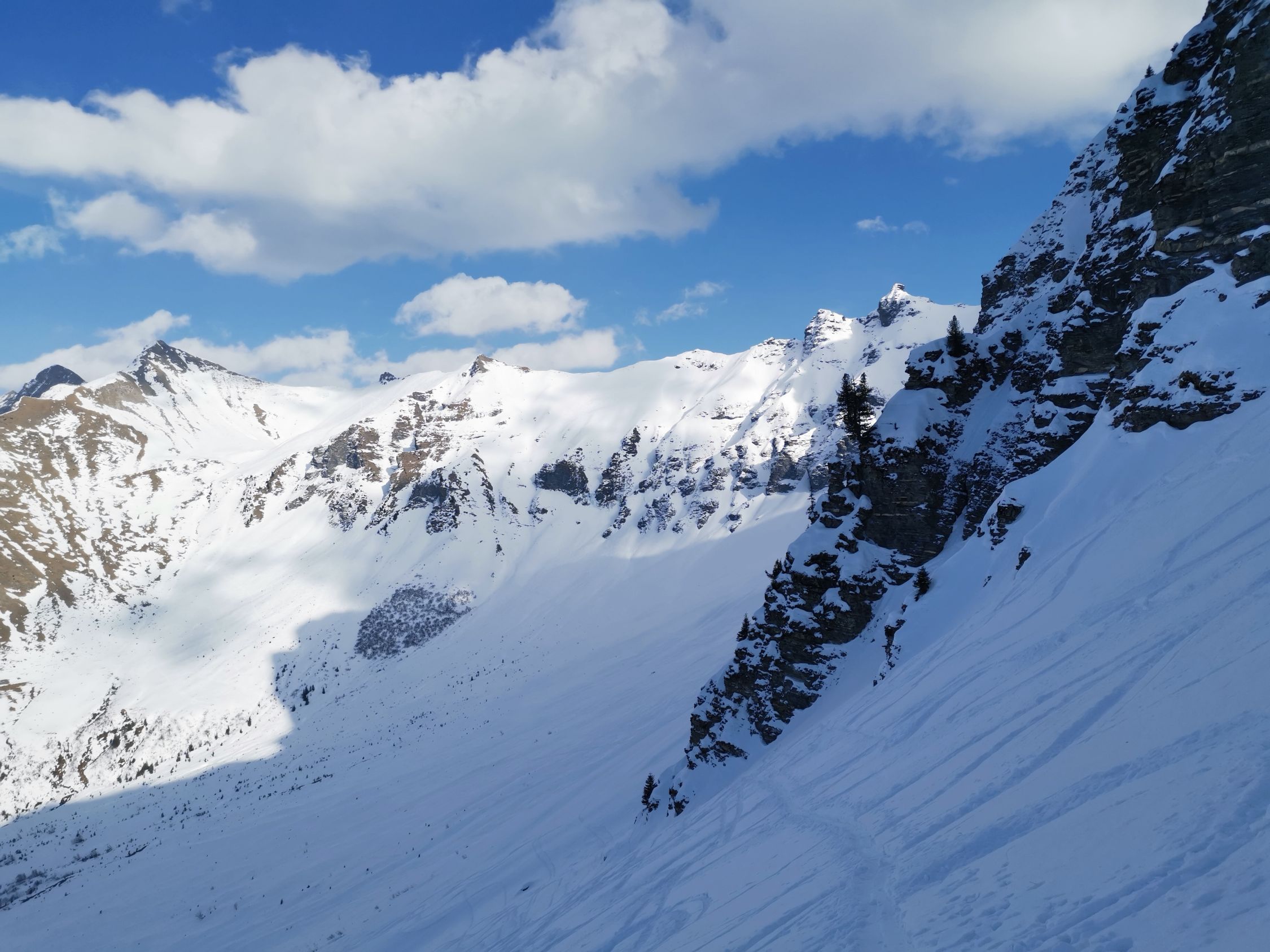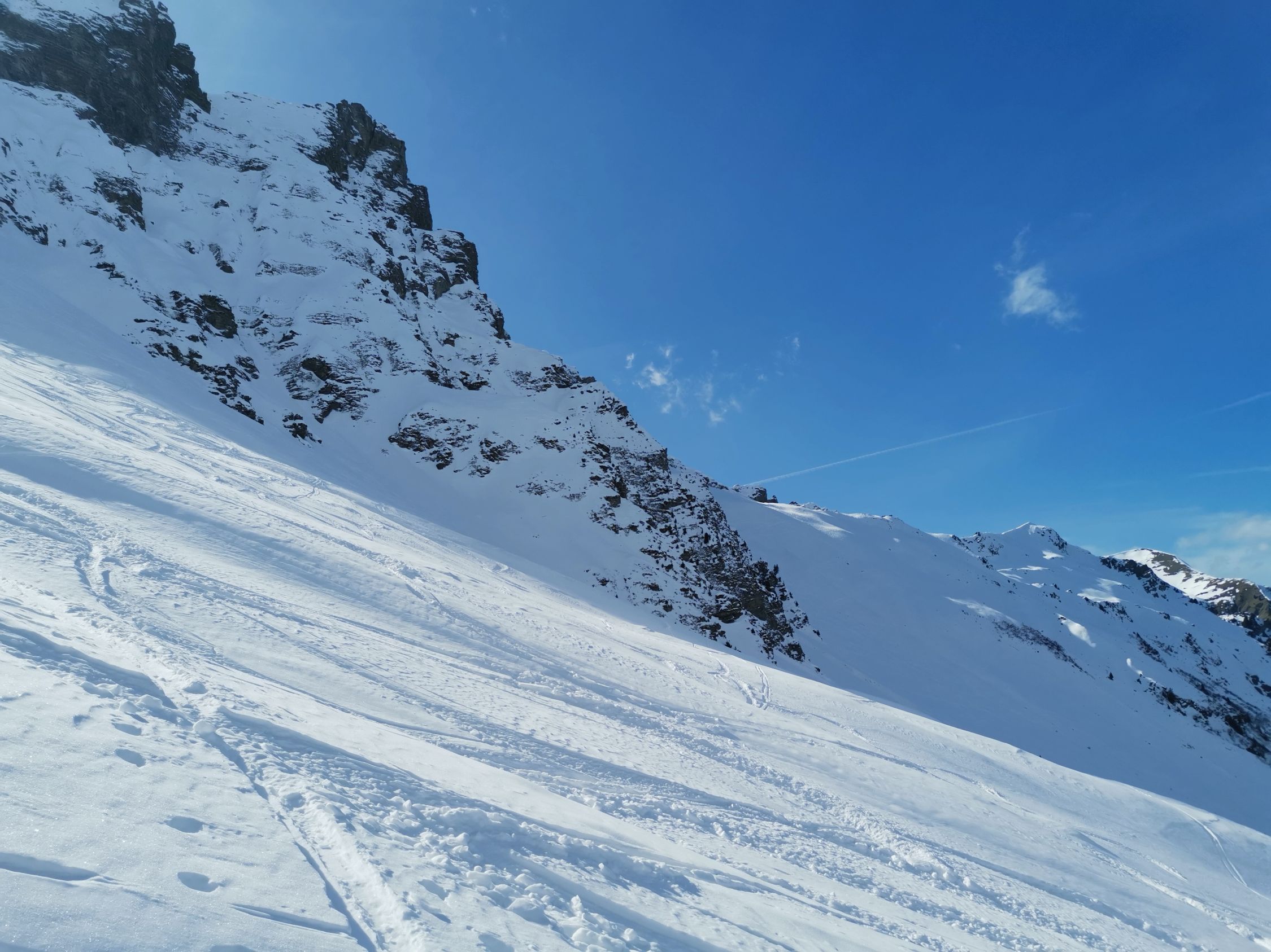 Weils am Samstag so schön war bin ich heute nochmals von der Alpkäserei Kiley Richtung Steibodecouloir. Diesmal jedoch war am unteren Ende des Coulis fertig (ca. 2100), bin dann rechts unter den Felsen Richtung Bodezehorn bis auf 1800 in den Steibode abgefahren. Da nochmals angefellt und bis ca. 2050 Richtung Türmlihore hoch, dann Abfahrt zurück. Beim Start um 13 Uhr sonnig und warm, bei der Rückkehr um 16:30 dann schon schattig und kühl. Aufstieg und Abfahrt noch knapp ohne Skitragen.
