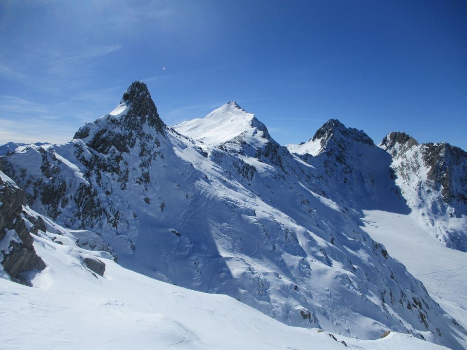 Wetter- Schnee- und Fernsichtverhältnisse tiptop. Ein etwas kalter Wind ging. Wir bestiegen die Cima di Lago nach unserer Rückkehr von der Cristallina noch am frühen Nachmittag, Gipfelankunft 14.45 h. Die Route war inzwischen durch die ersten eintreffenden Hüttengäste bestens gespurt. Im Gegensatz zur Cristallina derzeit rundwegs auch als Skitour zu empfehlen