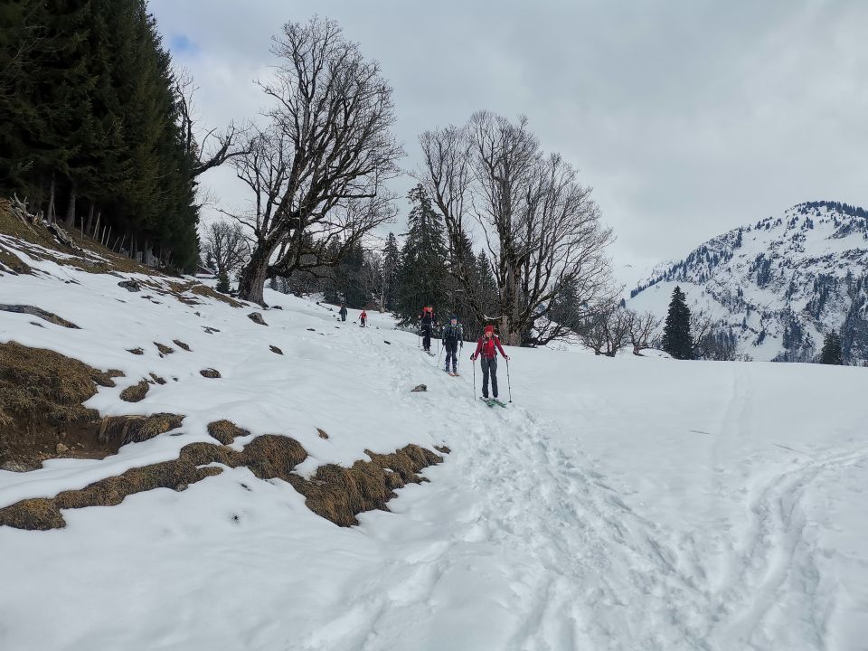 Wenig Schnee, zum Teil Bruchharsch und sehr windverpresst. Schattig zum Teil noch lockerer Schnee