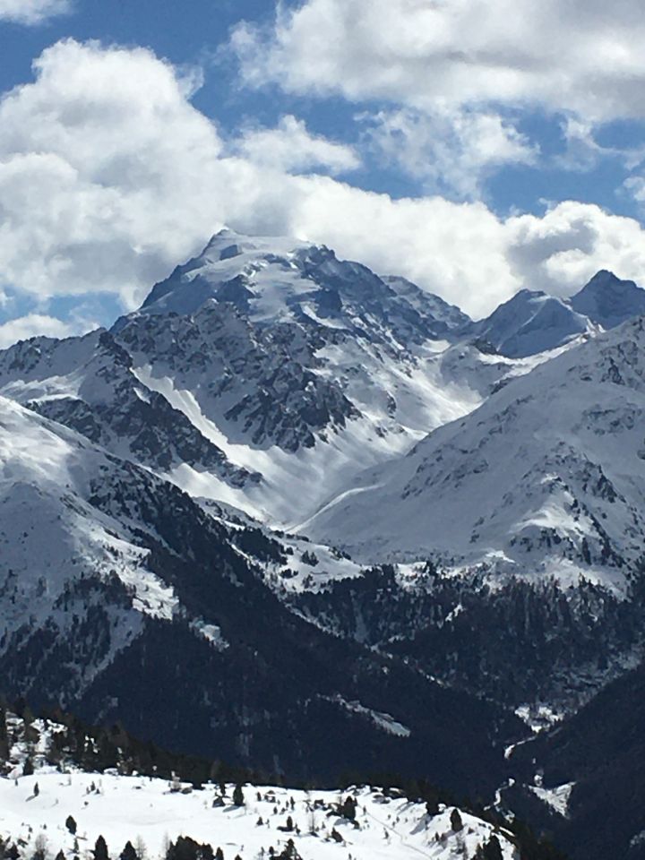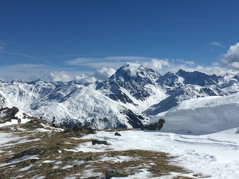 Winterwanderung via Südflanke auf den Skigipfel mit der Aussicht auf den Ortler. Start um 9.30 in Lü, minus 2 Grad, Sonne und windstill. Auf markiertem Wanderweg mit Hochtourenschuhe bis zur Alp Tabladatsch, Teilweise Schnee auf dem Alpsträsschen und etwas vereist. Nun weiter den schönen Wanderweg hoch bis Punkt 2388 mit der Jägerhütte mit schönem Bank. Ab hier weglos die steile Südflanke hoch, schneefrei bis zu den markanten Felsen und unschwierig im Schnee auf die Gipfelkuppe oberhalb der Fuorcla Sassalba. Abstieg wie Aufstieg, tolle Sicht in alle Richtungen, inkl. Ortler, Piz Terza, Stilfserjoch, Piz Umbrail, Piz Turettas, Piz Dora, Piz Daint, Piz Starlex usw.