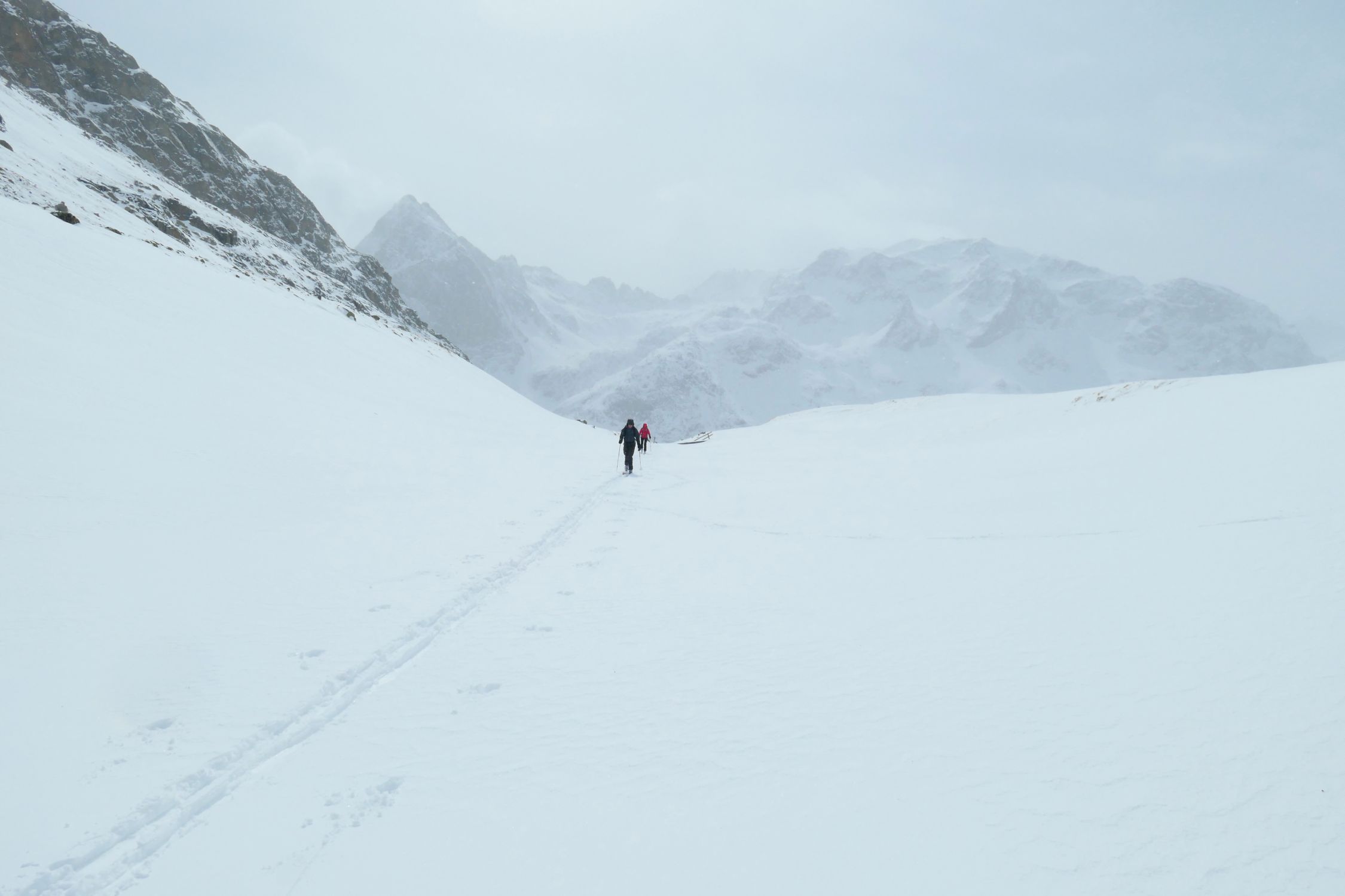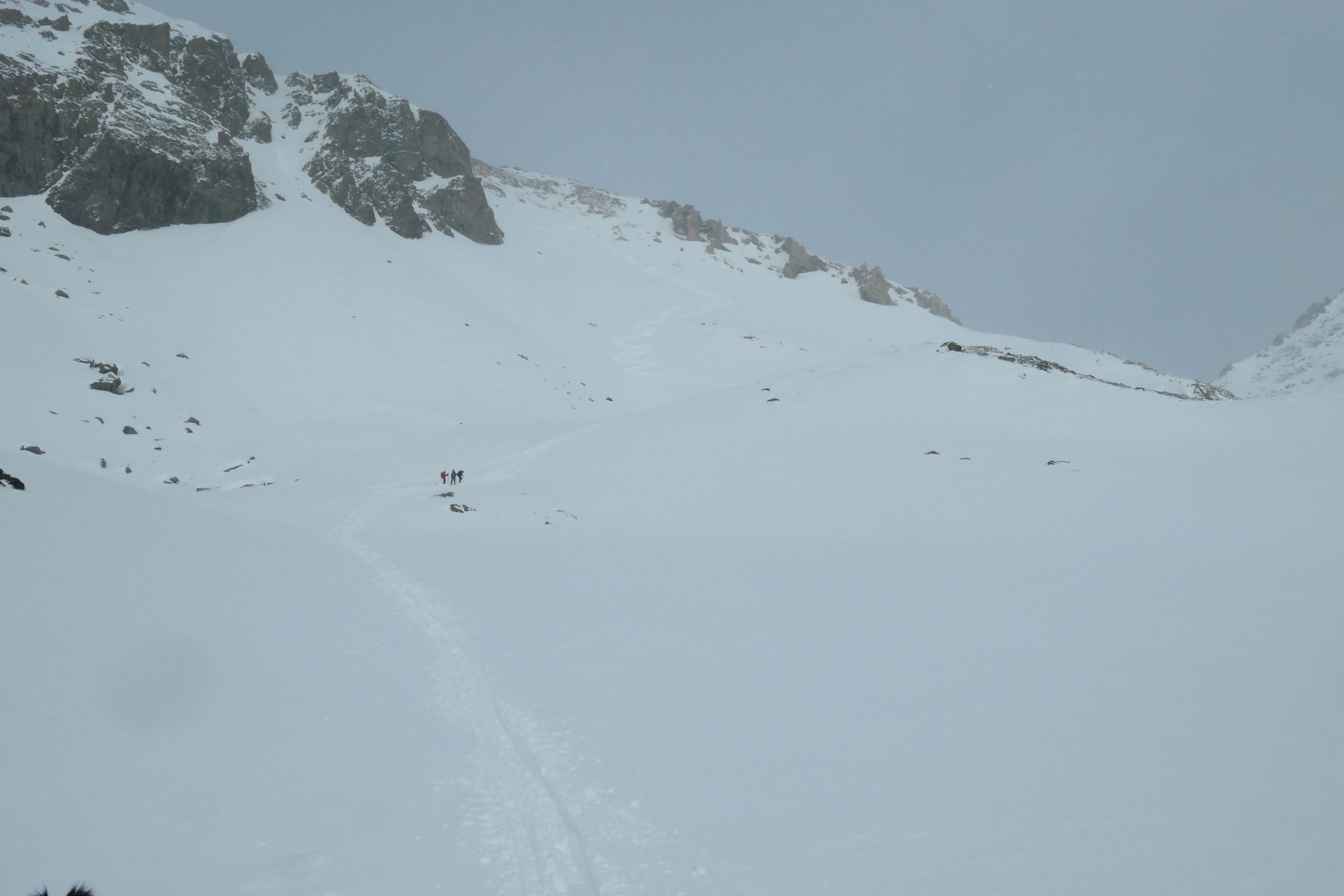 Unten wenig Schnee, kurze Tragepassagen, dann sehr gut