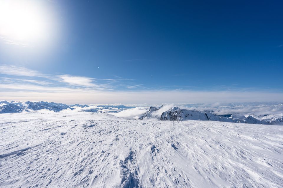 Später Start um 13:00 in der Hoffnung auf besseres Wetter am Nachmittag. Strömender Regen bis 1500m, dann leichter Schneefall und teils schlechte Sicht (nicht ganz ungefährlich aufgrund der vielen Karstlöcher). Um 16:00 am Gipfel dann endlich blauer Himmel und fantastische Rundsicht. Abfahrt oben ziemlich windgepresst, nur in wenigen Mulden pulvrig. Unterhalb 1600m sehr schwerer Schnee, und daher auf der Passstrasse mehr schieben als fahren.