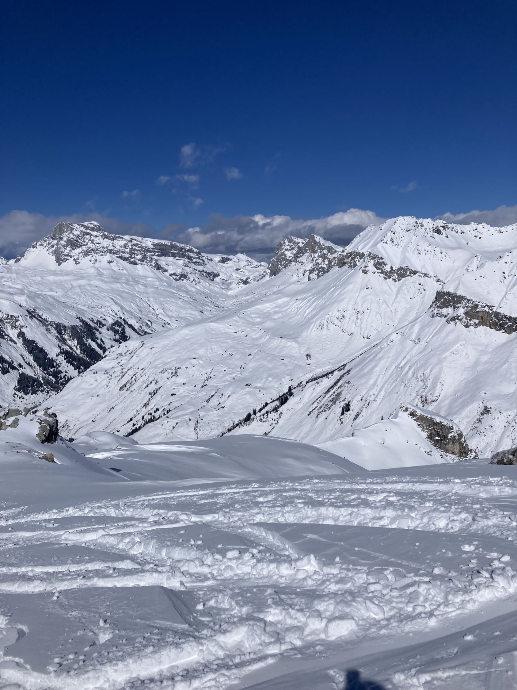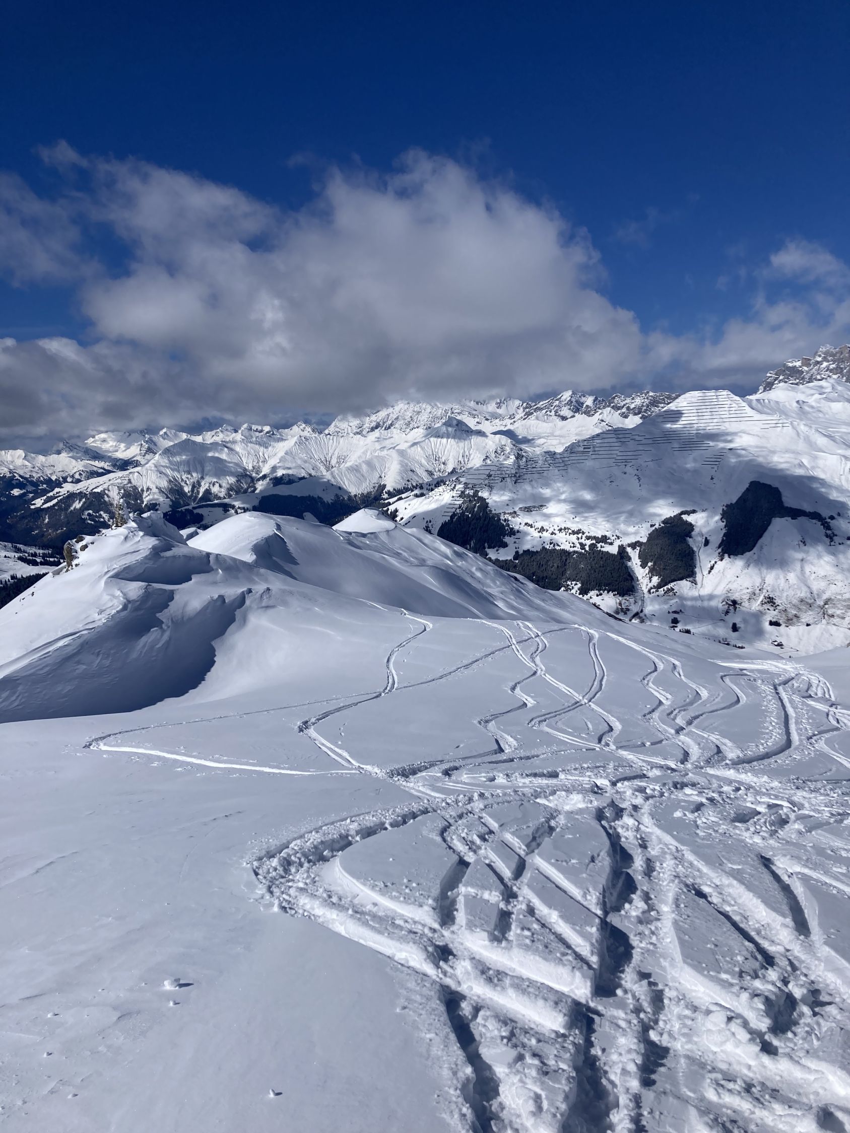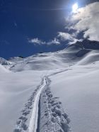 Sehr wenig Leute unterwegs. Der Pulver war luftig und leicht. Bis 2000m ausgezeichnete Verhältnisse.