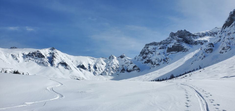 Schnee sehr knapp ab Fildrich bis ca. 1500m (vermutlich nur noch bis Do.), dann super Verhältnisse.. zwischen 10 bis 40 cm Pulver ! S-SW schon schwer & feucht (vermutlich Kruste am Freitag).. aber sonst mega ! Zweite Aufstieg Richtung Zwilinge Couloir.. super ! Grosse Lawine (von Regnen) in Steinbode Hang...
