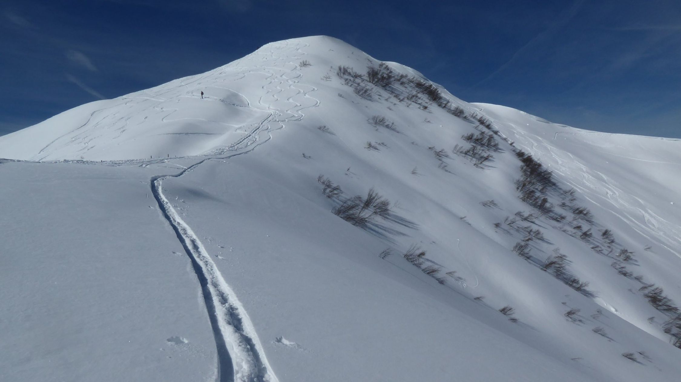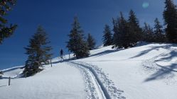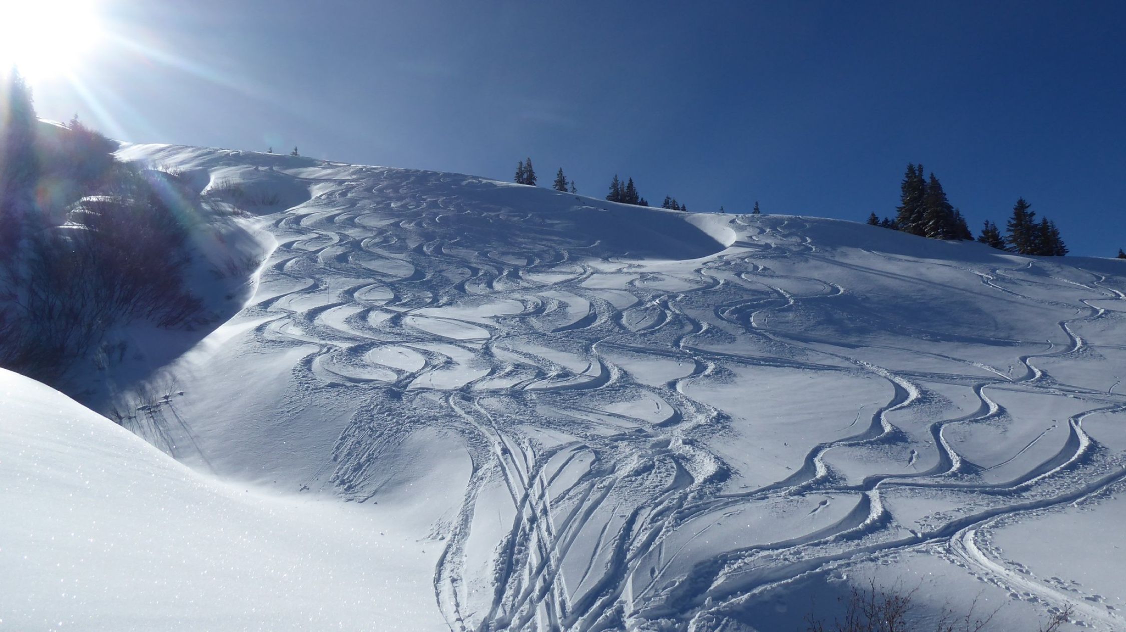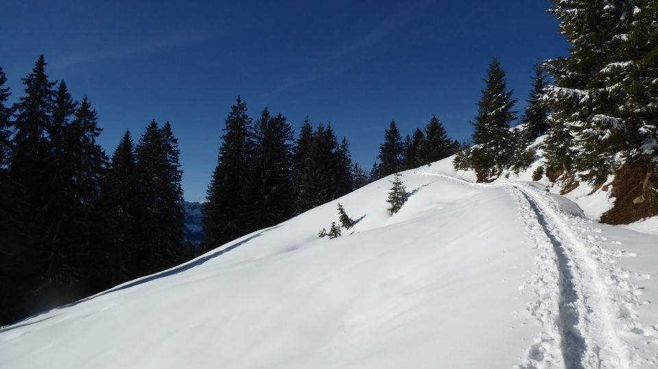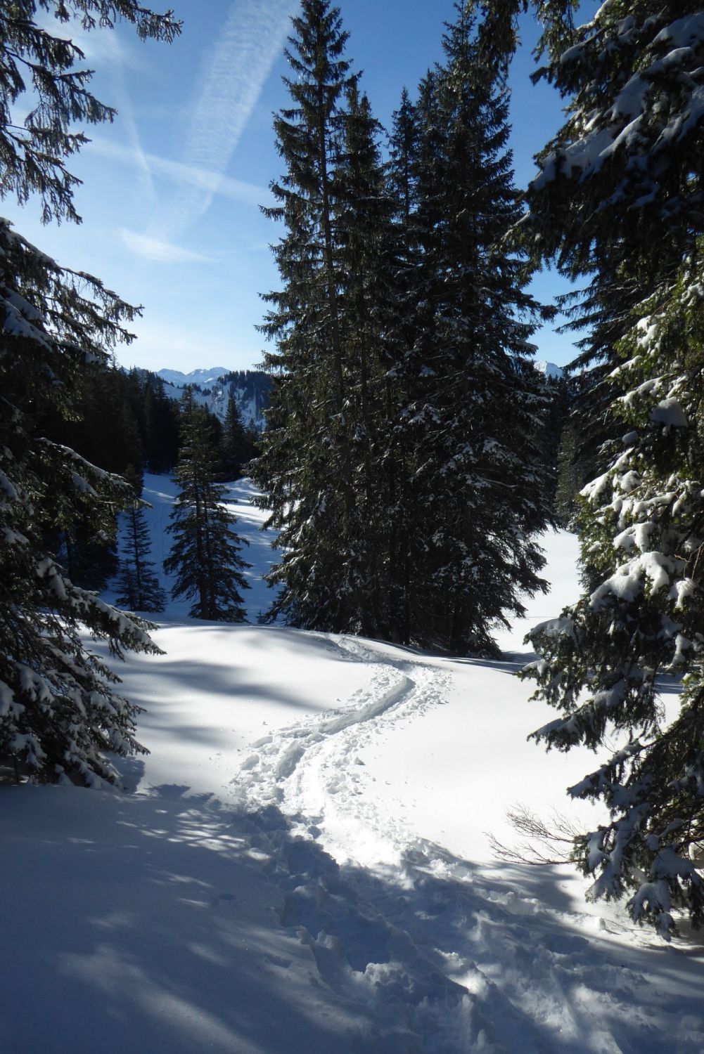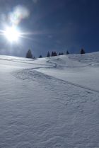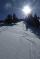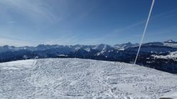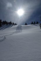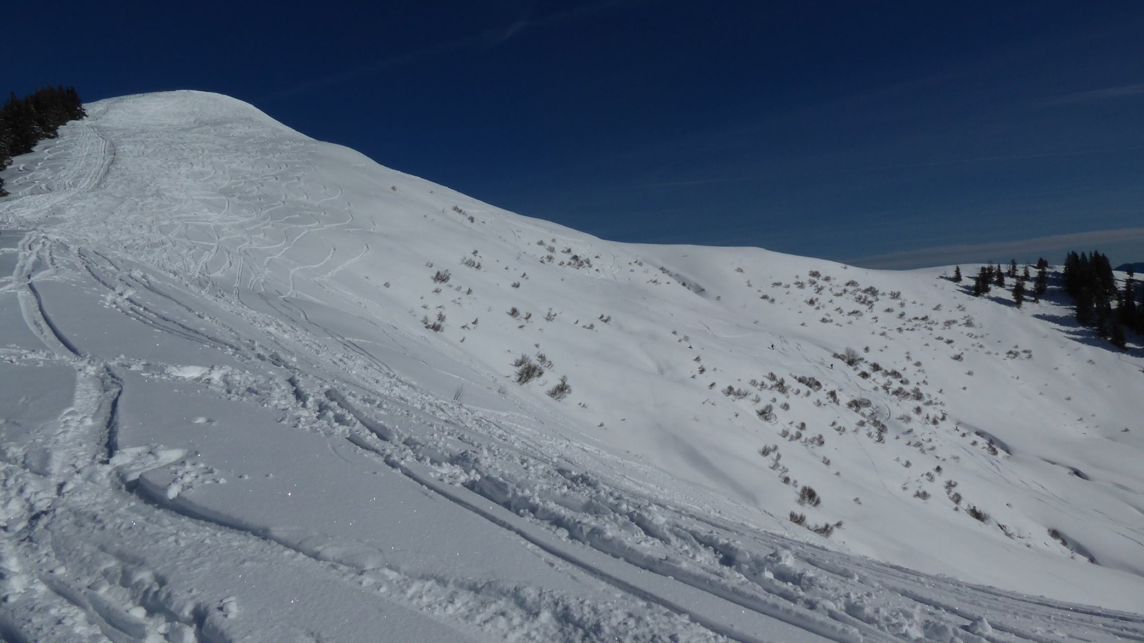 Start 8:40 noch etwas frisch. Gute Spur zum Südrücken und Top Verhältnisse nach Westen runter (Riedberghornlift BergStat.). Schon etwas eingefahren aber auch noch Platz für eigene Linie. Auch in vorhandenen Spuren alles noch bestens locker und gut zu drehen. Wiederanstieg in noch "unversauter" flotter, griffiger Spur. 3malige Abfahrt in die Bolgenseite bei Ideal Verhältnisse. Beim 1. Aufstieg war ich überrascht wie wenig auf der gesamten Grasgehren Seite verspurt war. Das hat sich im Laufe des Tages natürlich geändert. Mehr Fußvolk mit oder ohne Hilfmittel unterwegs wie Skitürler. Insgesamt 1200 Hm und 5 Std.