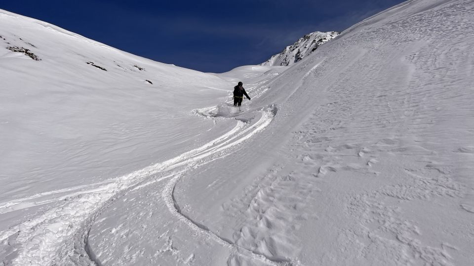 Genug Schnee, trotz Sonne noch pulvrig, viel Platz für eigene Spuren. Keine Steine. Kurzer Gipfelgrat gut zu gehen
