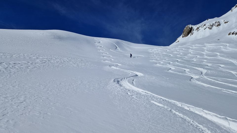 Ab Winterboden bis Giübin mussten wir Spuren - unten durch Pulver, ab Summermatten eher Presspulver bis hart.