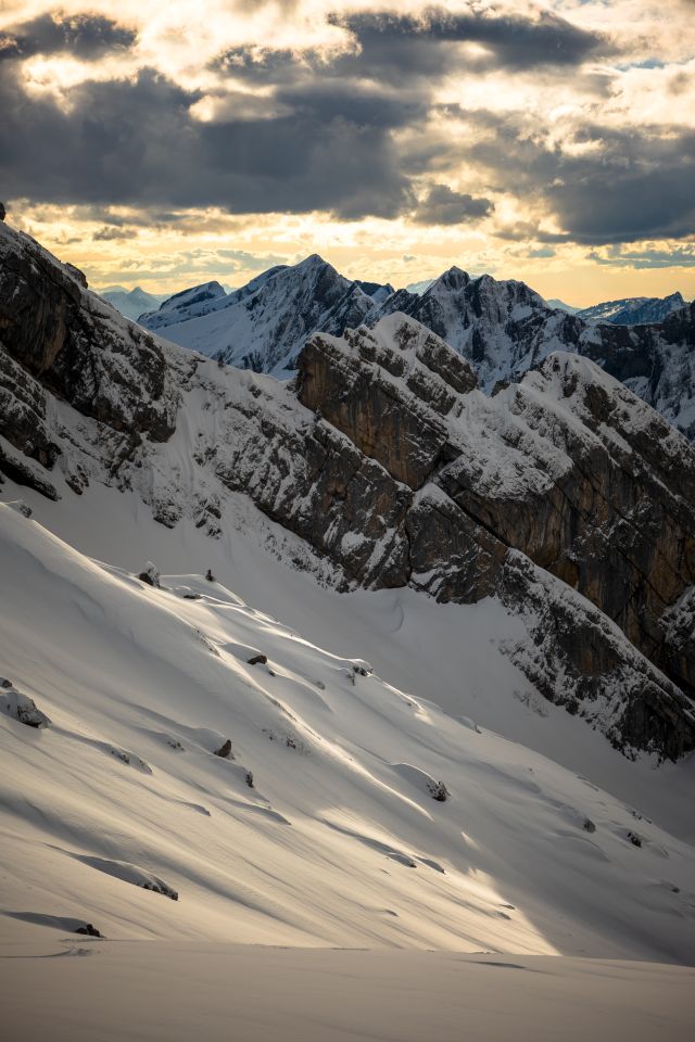 Schneehöhe ab Rinderweid okay zum fahren. Ab ca 1.600hm schöner Pulver in den Mulden. Insgesamt oben raus etwas verblasen, aber nicht sondern schlimm.