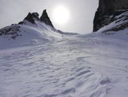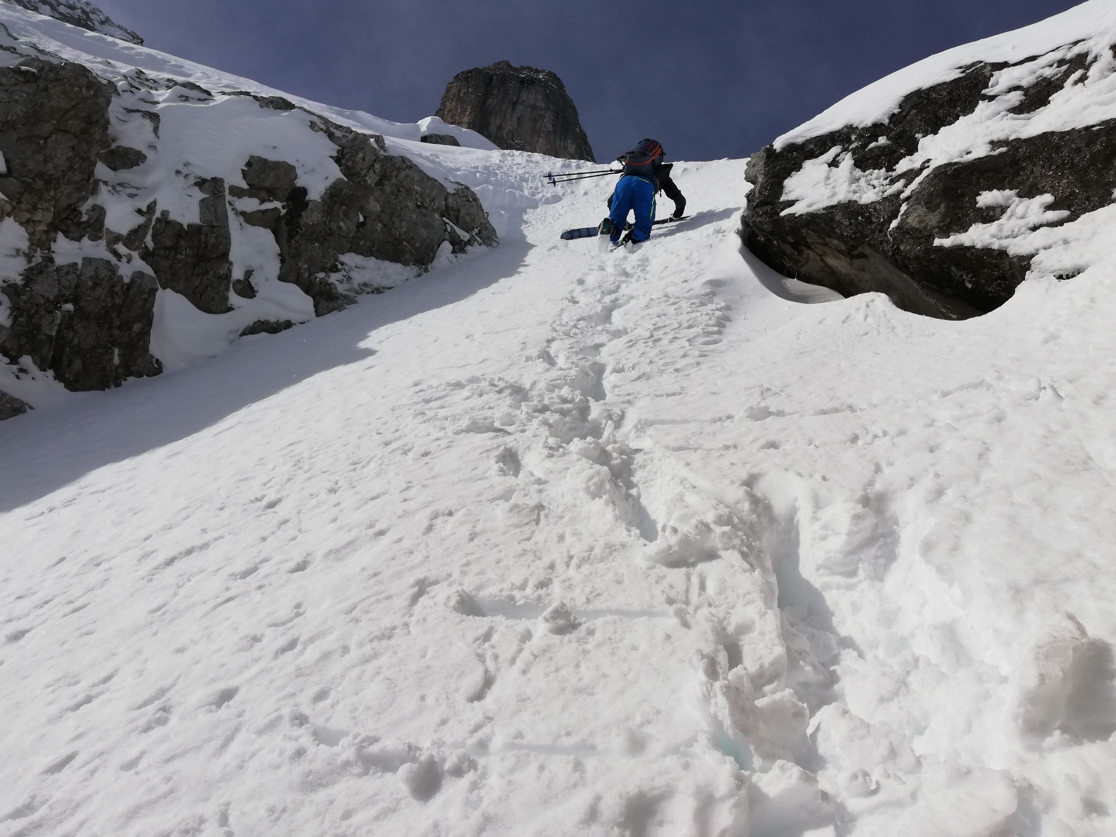 Wunderschönes frühlingshaftes Wetter. Der Weg zur Lindauer Hütte ist noch in einem recht guten Zustand. Aufstieg dann zum Botaloch mehr oder weniger alles gespurt. 2 Tourengeher nahmen eine etwas andere Route und gingen Richtung Drusator. Aufstieg Botaloch so weit wie möglich mit Ski und dann in wenigen Stapferspuren hinauf. War streng, tiefer Schnee aber super. Grundsätzlich heute wahrscheinlich die bessere Variante als die Querung und auch als der Aufstieg über den Tiergarten. Weiter in feinem Schnee hinauf zur Querung, Gipfelhang und Gipfel. JUHU es gibt ein kleines Holzkreuz nun da oben. Abfahrt mehr oder weniger wie Aufstieg. Obere Teil noch sehr gut zu fahren, unten dann schon recht schwer der Schnee.