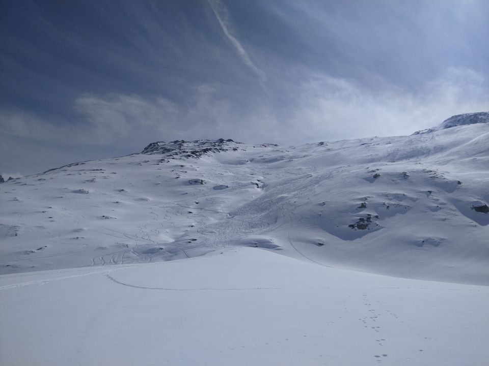 Start kurz nach 07:00 in Realp, schon fast zu spät - freie Parkplätze waren bereits sehr rar. Ski tragen bis Brücke beim Kraftwerk, danach durchgehend genug Schnee auf der Militärstrasse nach Oberchäseren. Für den Aufstieg zum Stelliboden haben wir dann die Variante durch das Bachtobel gewählt, was auch problemlos geklappt hat. Vom Stelliboden liegt dann eine gute Spur +/- auf dem Verlauf des Wanderwegs. Abfahrt entlang der Aufstiegsroute, plus eine Zusatzrunde um den letzten Hang nochmals zu Fahren. Grösstenteils Pulver angetroffen, ab und zu eine abgeblasene Stelle. Viele Lawinenabgänge der letzten Tage anzutreffen (und es ist durchaus noch Potenzial vorhanden..).