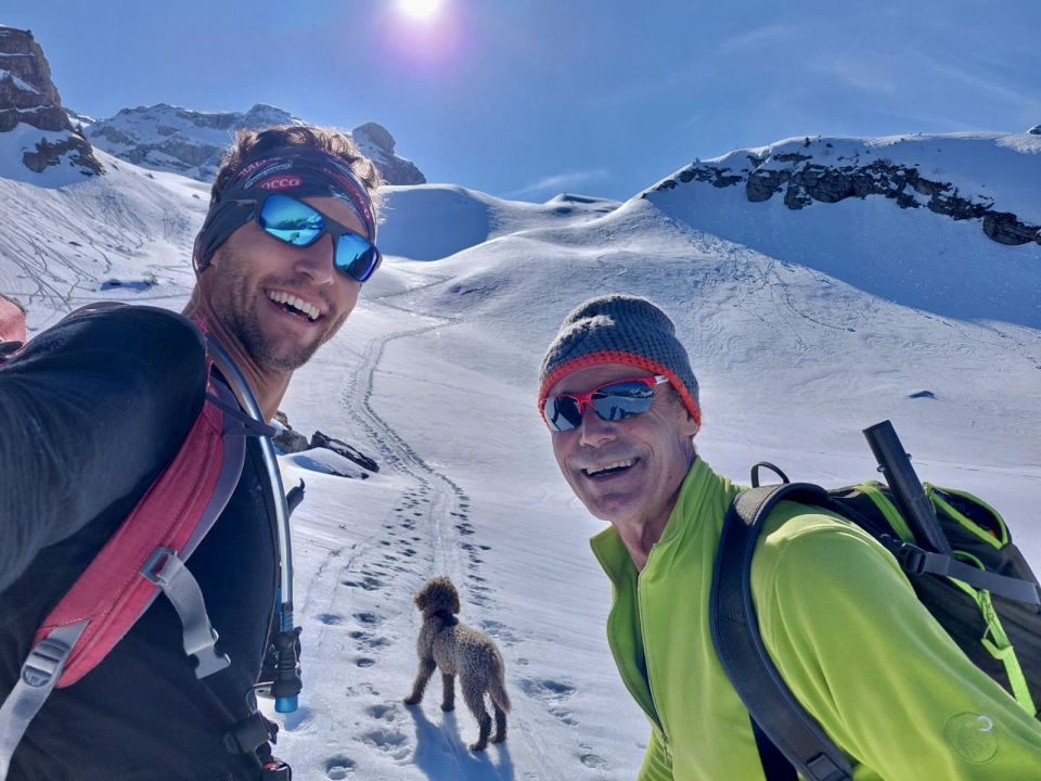 Um 09.00 vom See zu Fuss durch den Wald Richtung Rinderweid aufgestiegen. An 1300m gute Schneeunterlage, bis zum Gipfel sehr gute Verhältnisse. Es waren doch noch einigen Skitourer unterwegs, z.T. auch Richtung Rederten Grat. Auf dem Gifpel waren wir 6 Personen.