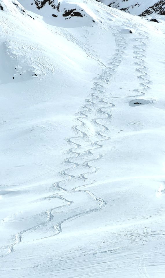 Oben 40, unten 10 cm Pulver. Gipfel abgeblasen.