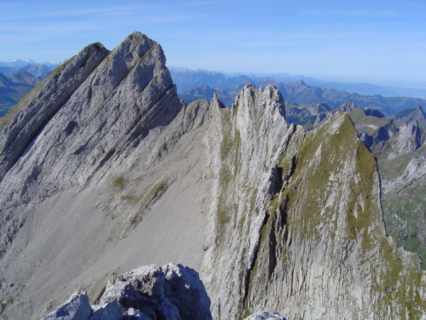 Ab Rotsteinpass 2120m, durch die Fliswand zu P.2334, dann in den Altmannsattel 2368m gequert. Ab da in leichter Kletterei auf den Gipfel des Altmann. Abstieg bis P.2334 gleich, dann auf der alpinen Route via P.2321 - P.2294 - Jöchli 2335m. Weiss blau weiss markierter, steiler Abstieg zwischen Jöchli und Moor bis ca 2150m. Dann die Geröllhalde gequert, und aufstieg zu P.2197 - P.2363 - Wildhuser Schafberg 2373m. Abstieg: via Mietplätz - Schäferhütte - Gamplüt - Dreihütten - Oberloch - Alpli.