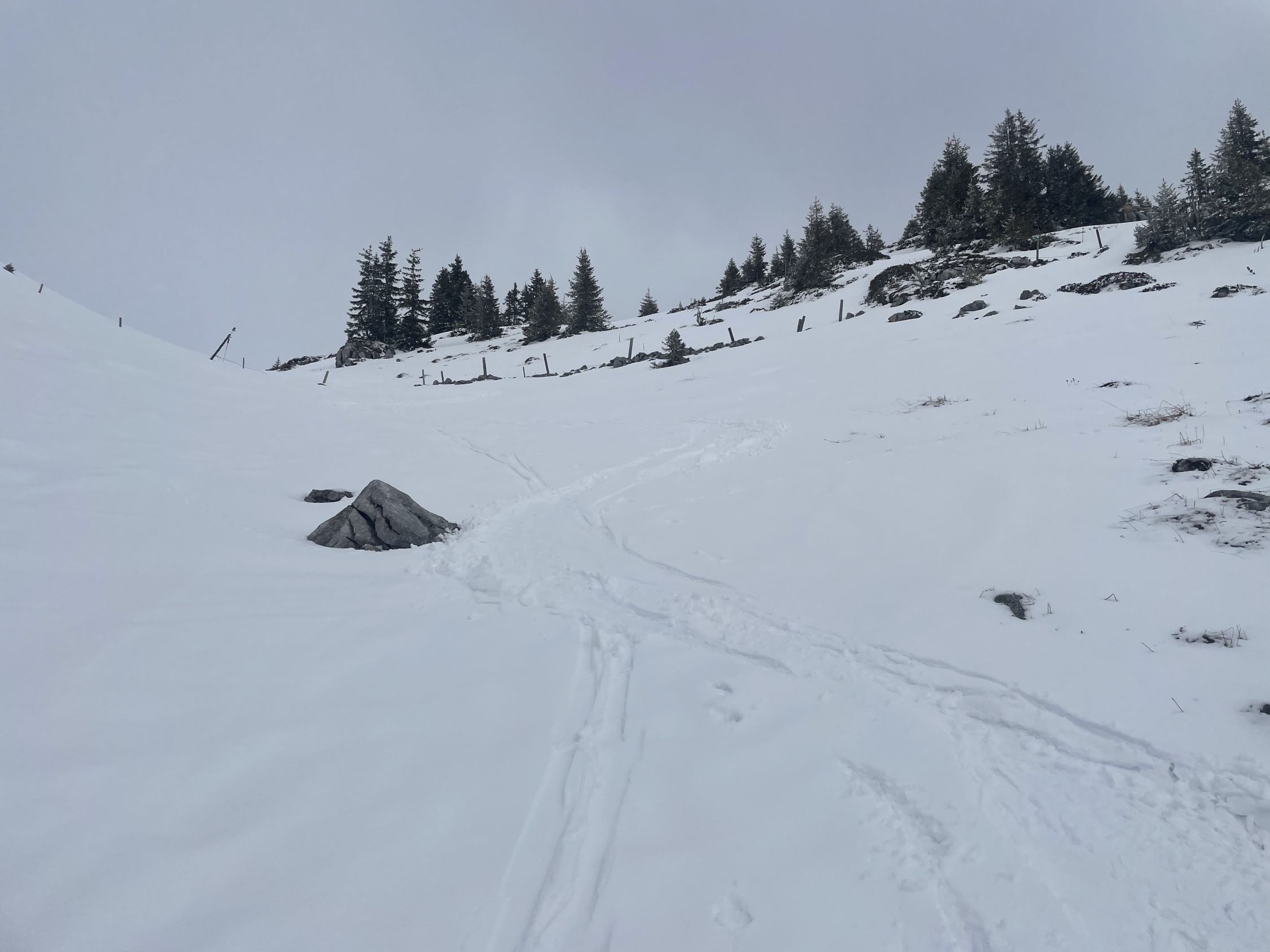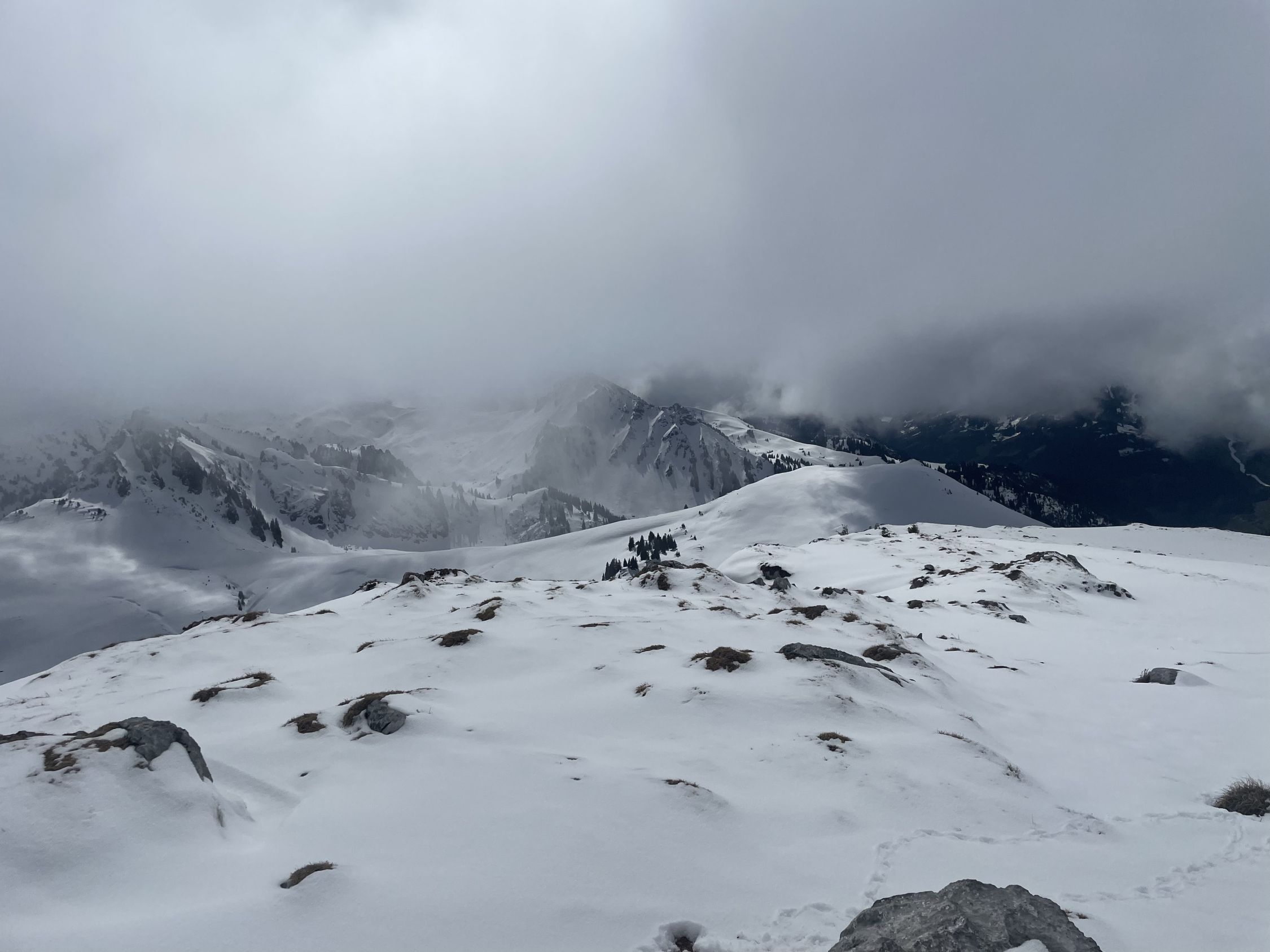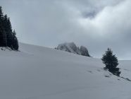Heute war ich zu positiv, was das Wetter anbelangte. In der Anfahrt war es bereits schön im Mittelland, aber im Diemtigtal noch wolkenverhangen, was sich letztlich bis zum Tourende auch nicht ändern sollte. Der Schnee war durchwegs nass mit einem bisschen Neuschnee drauf. Im Aufstieg dachte ich noch, es würde sich so entwickeln wie beim Eintrag von Alefri vom Bürgeln heute, also immer besser. Aber das war leider nicht so. Trotzdem schöner Aufstieg mit deutlich mehr Schnee als vor 3 Wochen. Am Gipfel hübsche Rast, leider wurde die Sicht in der Abfahrt oben schlechter, dabei wäre der Schnee dort noch am besten gewesen…nach dem Chäli dann Bremsschnee, man fühlte sich wie einer der letzten Generation, die überall rumkleben. Ich bin dann noch auf den Gestelegrat, mehr so zur Abrundung, die Sache bremste auch dort. Dann hatte ich genug und liess den Puur sein, wäre eh dasselbe gewesen. Dann runtergebremst bis zum Auto.