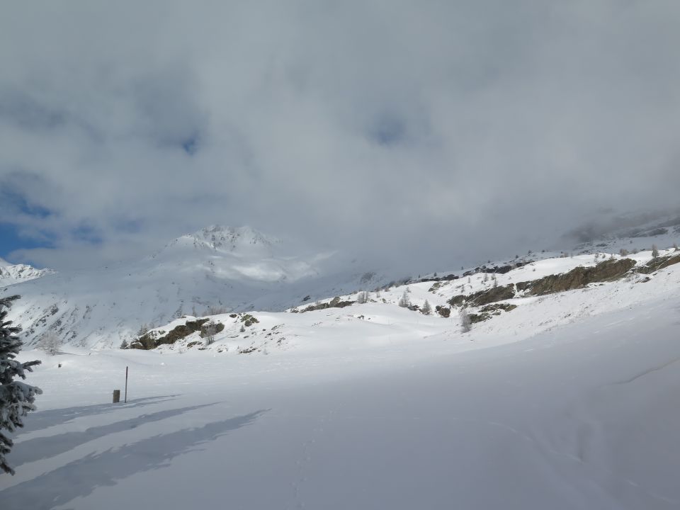 Abfahrt: Schön zu fahren auch wenn es stellenweise nicht all zu viel Schnee hat. Ab undre Hermettje wurde aus dem durchaus gut zu fahrender Schnee schnell nasser Bremsschnee. Vor dem Bach (