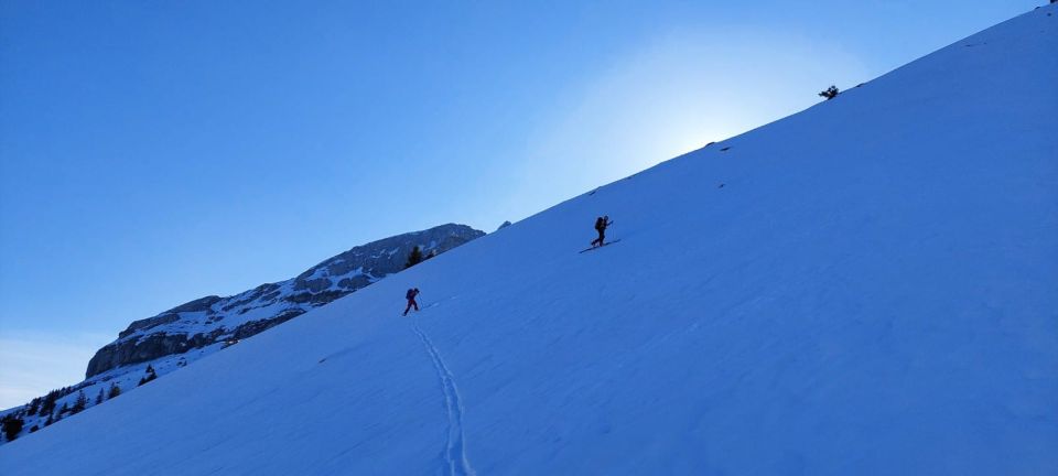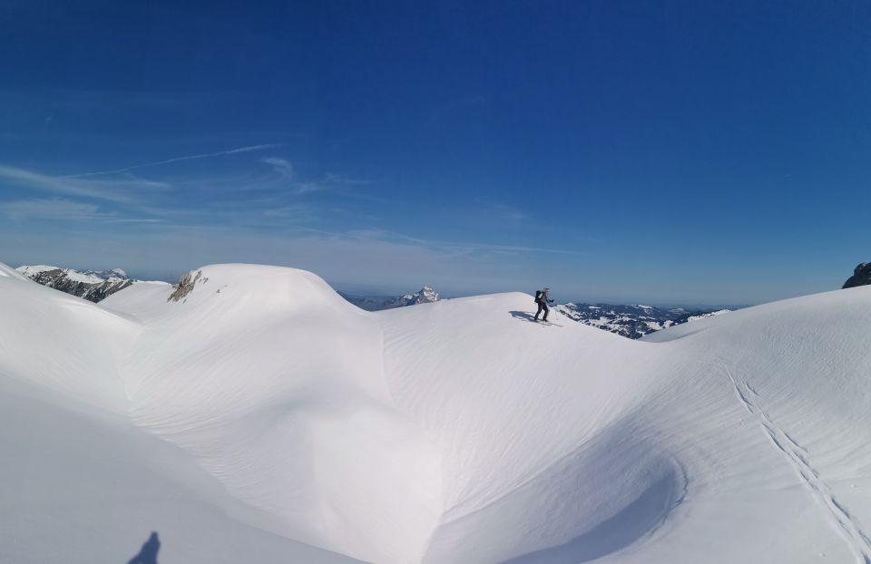 Mit zunehmender Wärme wird der Powderteil eher wegfallen, die Skitragdauer bis Üsserscht Hütte zunehmen weshalb dann eher der Start ab Chäppeliber Bergstation zu empfehlen sein wird (achtung, z.T. lange Wartezeiten da nur eine offene 4er Gondel) . Abfahrt bis Üsserscht Hütte sollte noch eine Weile OK sein da genügend Schnee vorhanden.