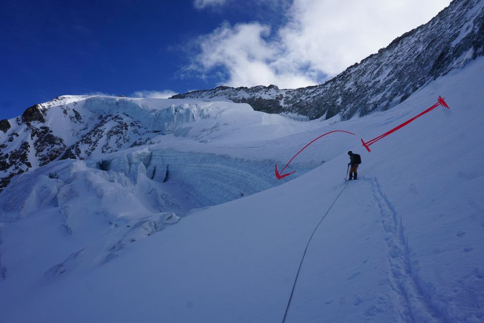 Sollte etwas später im Jahr besser werden, wenn es wärmer schneit und der Schnee liegen bleibt auf dem Gletscher. Klar anspruchsvoller als eine WS-Tour.