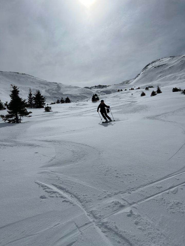 Schnee noch immer gut, bisschen Steine unter den Gipfel
