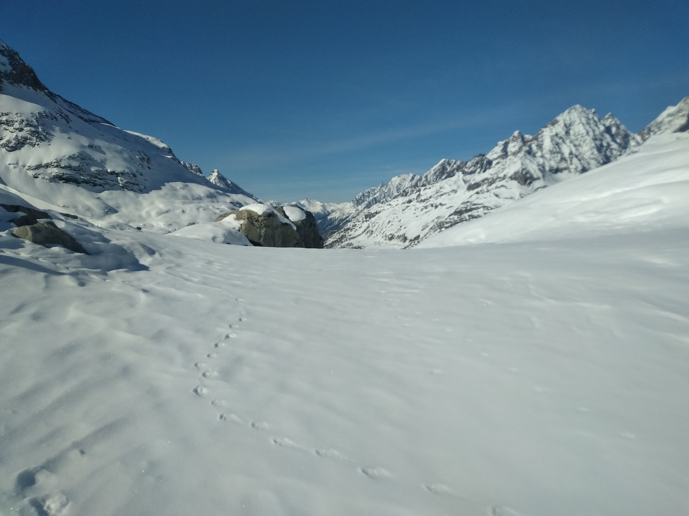 Guter Trittschnee, Steigeisen und Pickel empfehlenswert