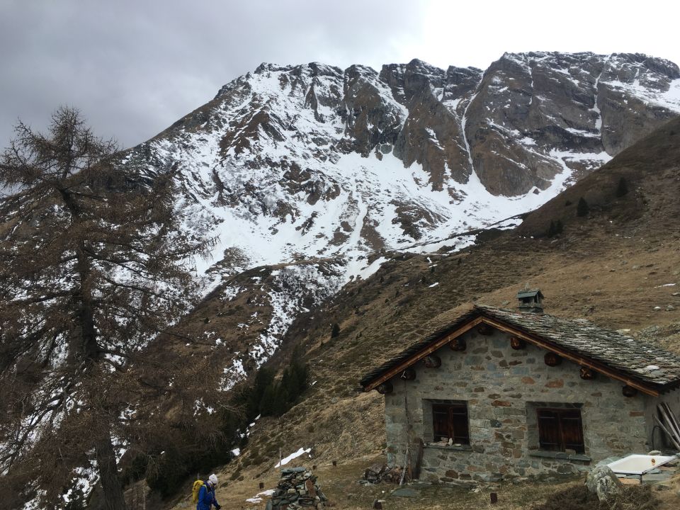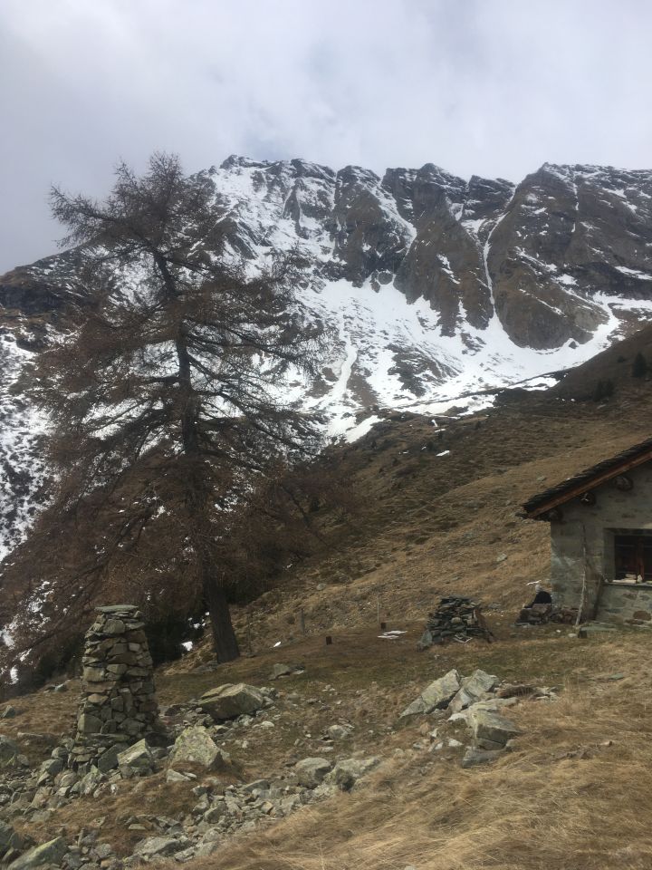 Wandertour im Bergell hoch über Roticcio/Vicosoprano nähe Ostflanke Piz Cam. Start 9.30 UhrnWasserfassung über Roticcio Höhe 1350 m, steile ausgesetzte Alpstrasse mit grossem Parkplatz. 3 Grad, windstill, leicht bewölkt. Schöner markierter Wanderweg via Maiensäss Nambrun zur schön gelegenen Alp Furcela. Schöne Aussicht auf Badile, Cengalo, Spazzacaldeira, Bacun usw. Abstieg wie Aufstieg.
