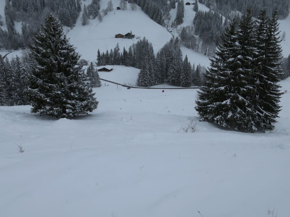 Die Strasse bis Meniggrund (und weiter) ist schwarz geräumt. Vom Parkplatz bis Sennhütte 15-20cm Neuschnee ohne Unterlage. Ab Sennhütte beinahe perfekte Verhältnisse mit 20-40cm Neuschnee. Sogar die Wolken haben sich genug aufgelöst (wir waren erst um 16Uhr oben). Ab Sennhütte muss man bei der Abfahrt sehr defensiv fahren, wenn man Steinkontakt komplett vermeiden möchte, aber wer will bei so gutem Schnee defensiv fahren?? Von der Hütte auf 1436m bis zum Parkplatz ist es am Sinnvollsten, auf der Strasse zu bleiben. Aber auch dort würde eine zu enge Kurve zum Kontakt mit Asphalt führen. Wenn man vorsichtig und ohne viel Bremsen fährt, geht es ganz gut.