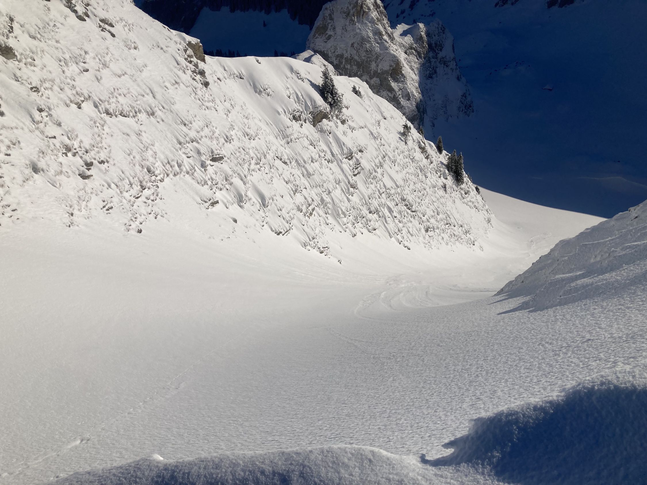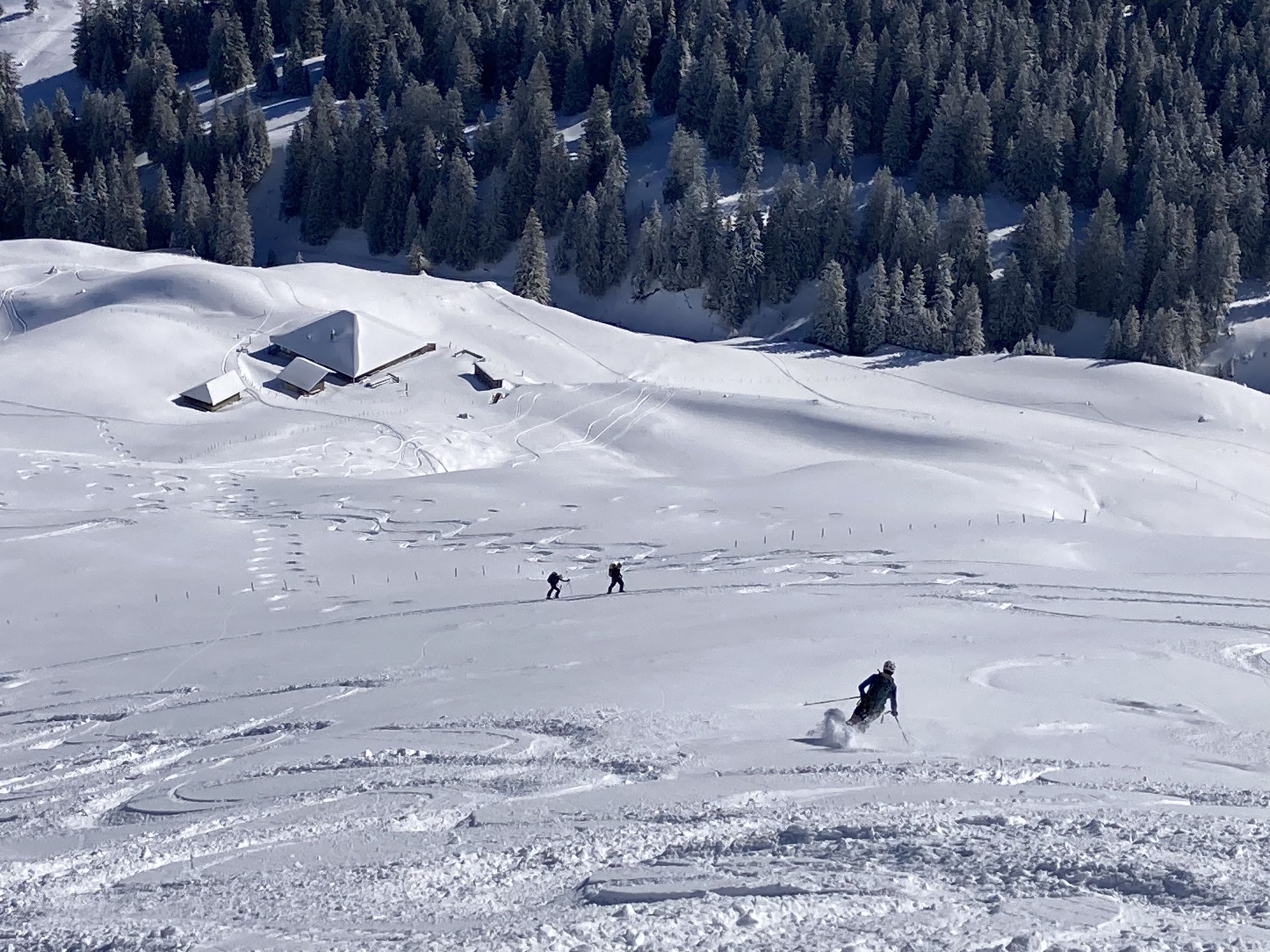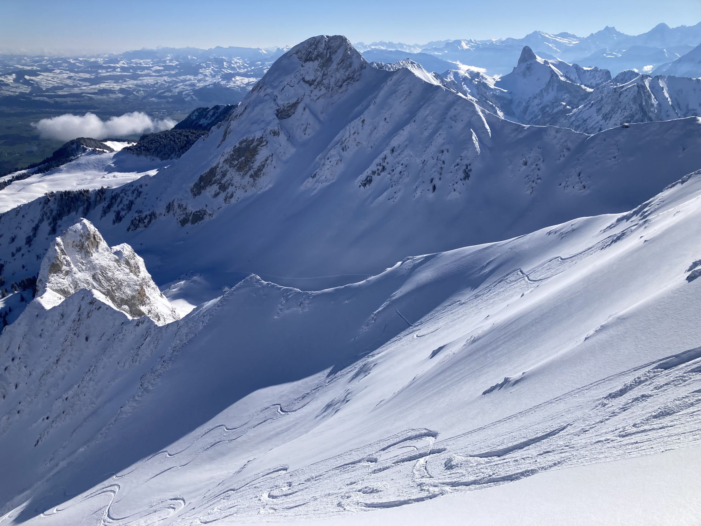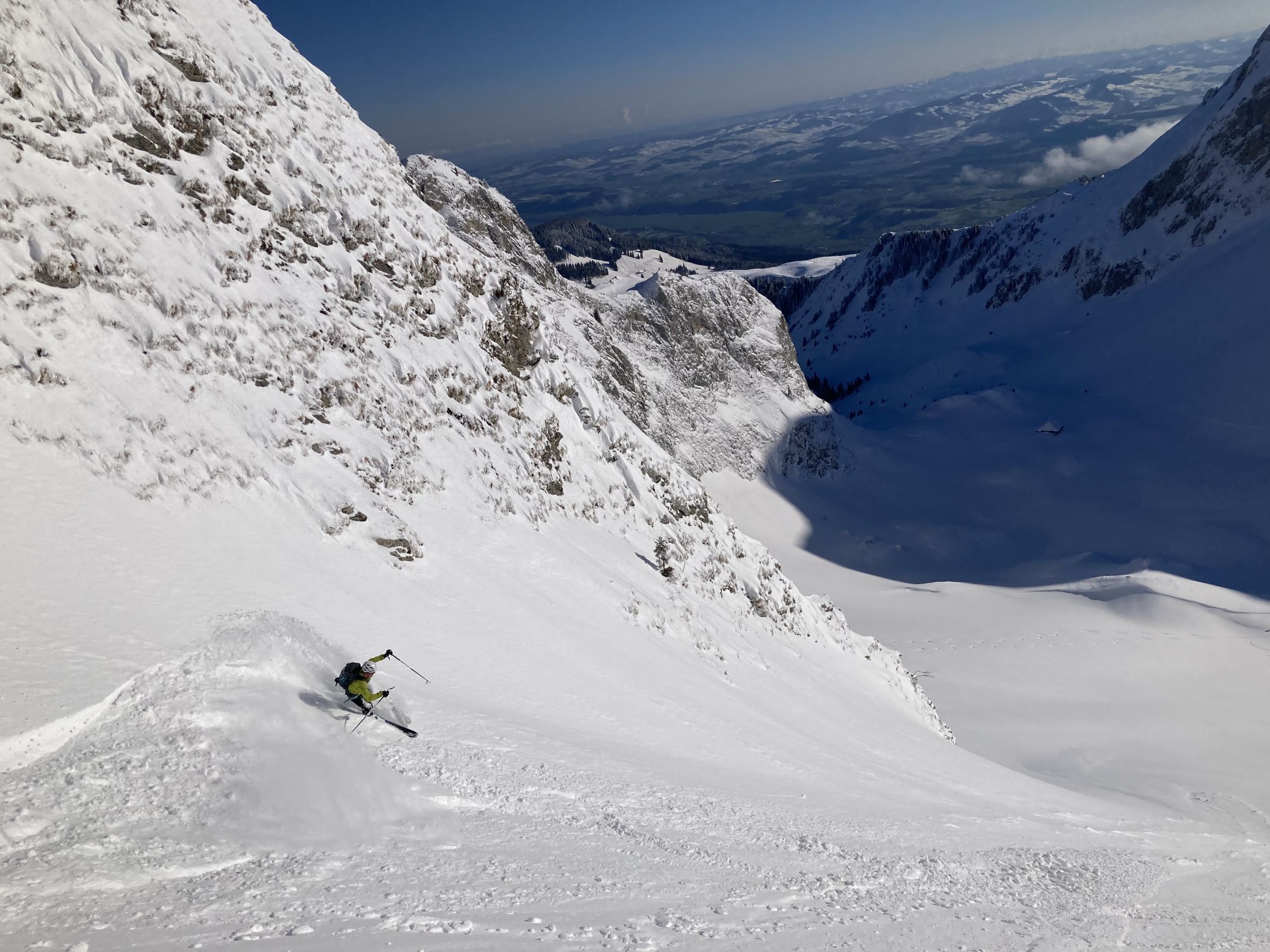 10-30cm Pulverschnee auf harter Unterlage (kurz spannend beim spuren des Morgetepass, da nur noch 5cm Puder auf sehr hartem Schnee...). Die beiden Ostcouloirs mit etwas Sluff, aber sonst Genuss pur. Nordflanke so westlich wie möglich eingefahren - von oben bis unten ein Traum. Zum Dessert noch Bire drangehängt und auch top bis unteres Brüggli bei Unterer Gantrischhütte. Ein Morgen, den wir nicht so schnell vergessen werden! :-)