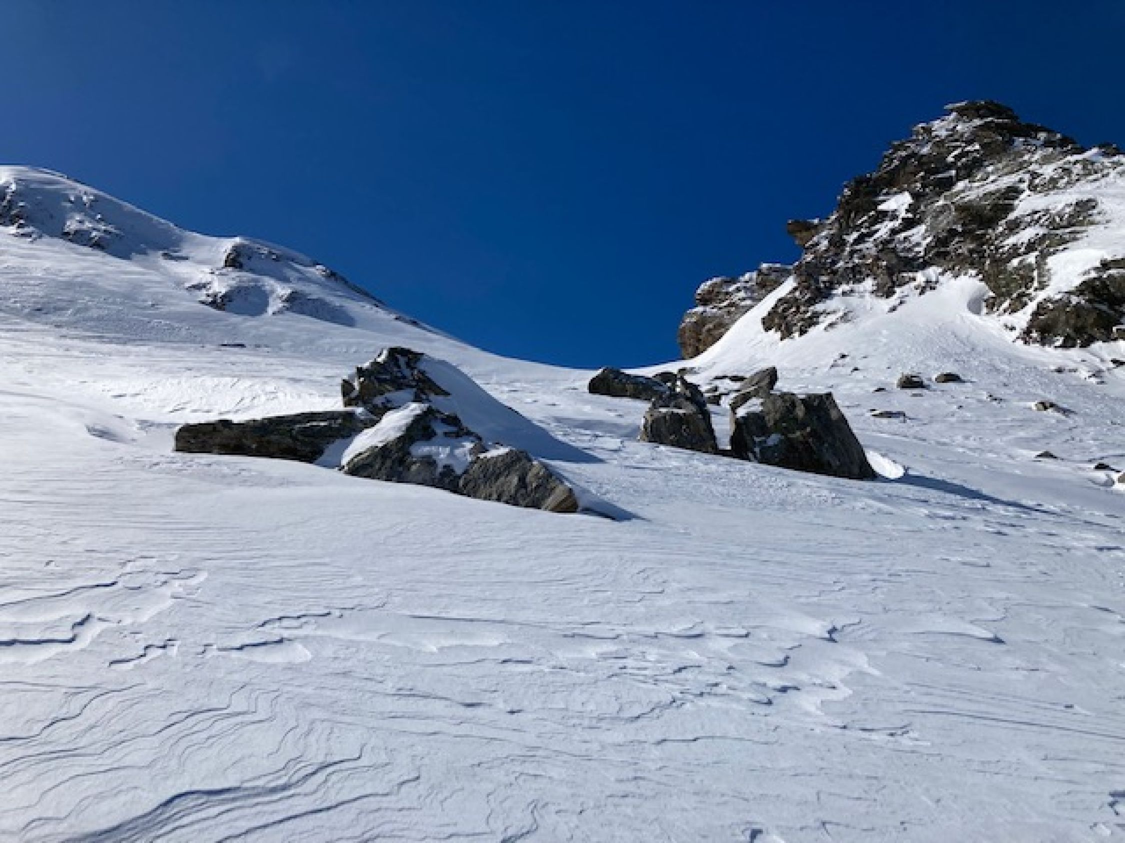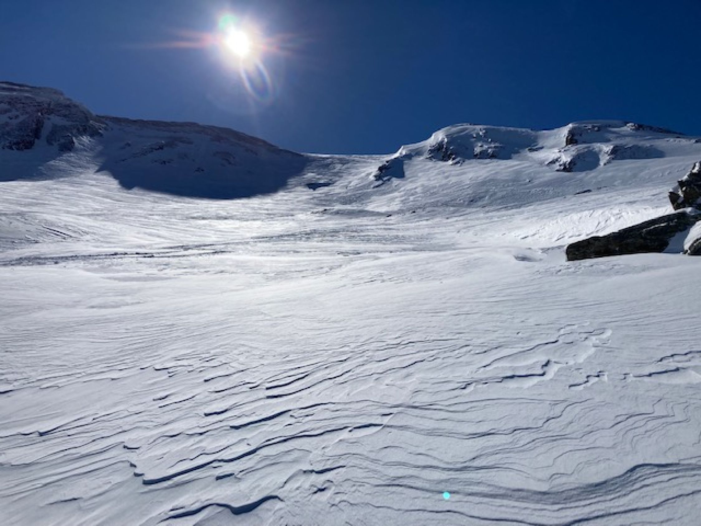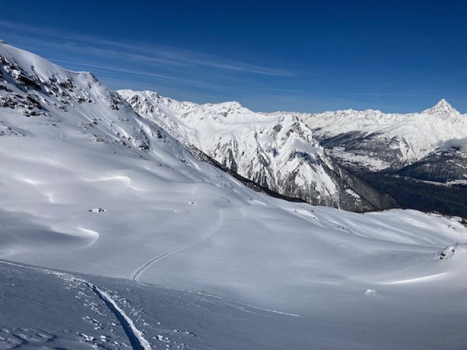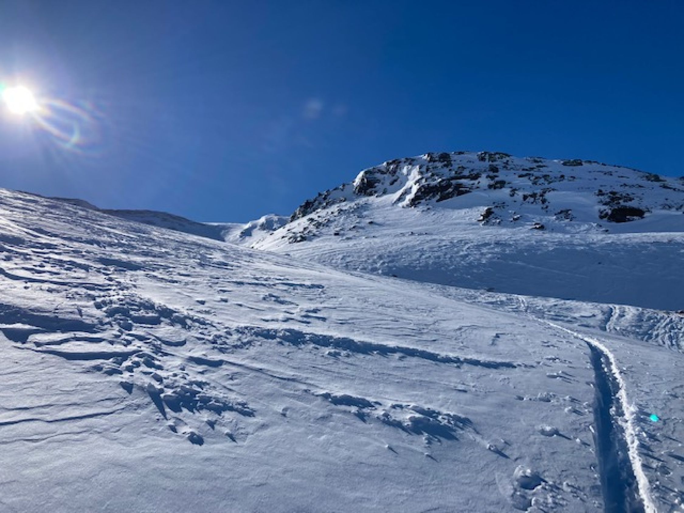 Diesen Winter noch selten so genialen Pulver gefahren. Ab Bodmertälli etwas mehr Windharst. Den letzten Hang zur Mäderlicke haben auch zwei Vorläufer ausgelassen.