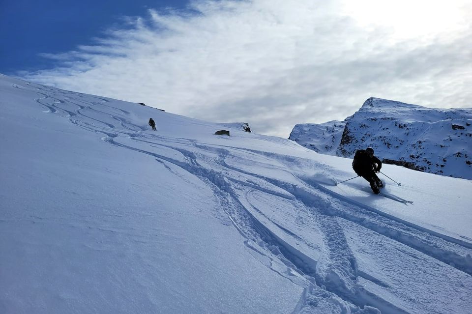 Der Hüttenweg und der Übergang über das Furggelt wurden gestern gespurt und bei Top-Powder gefahren. Heute steht bei den Gästen das Trapez am Grauhorn und morgen das Rheinwaldhorn auf dem Programm.