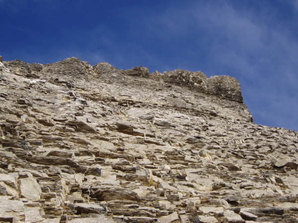 Schwierigkeitsgrad WS. Es hat nur einige kurze "Kletterstellen". Wer seilfrei im zweiten bis dritten Grad klettert wird bei trockenen Verhältnissen nirgens Schwierigkeiten bekommen. Ein kurzes Seil kann allenfalls im Abstieg gute Dienste leisten.