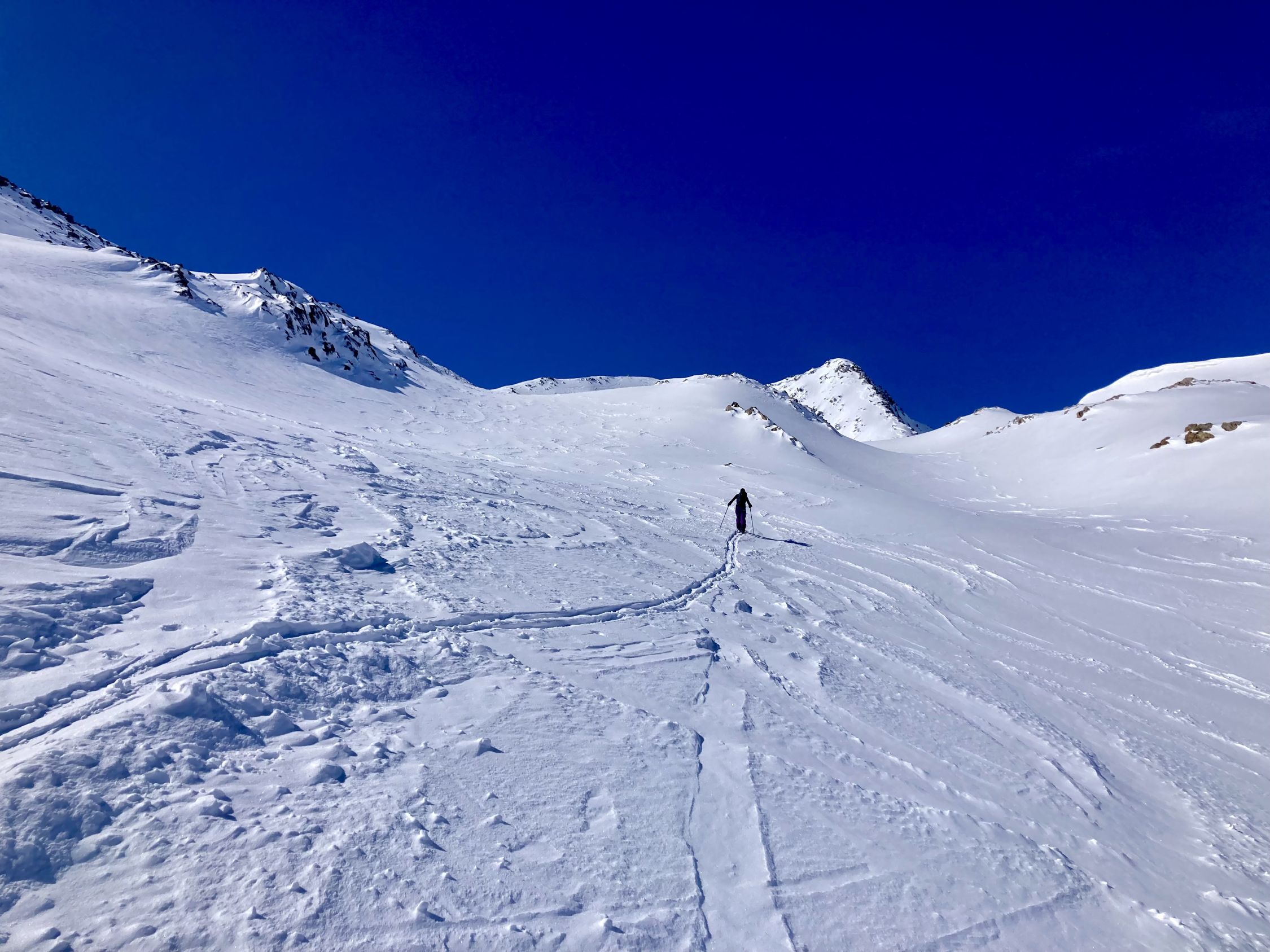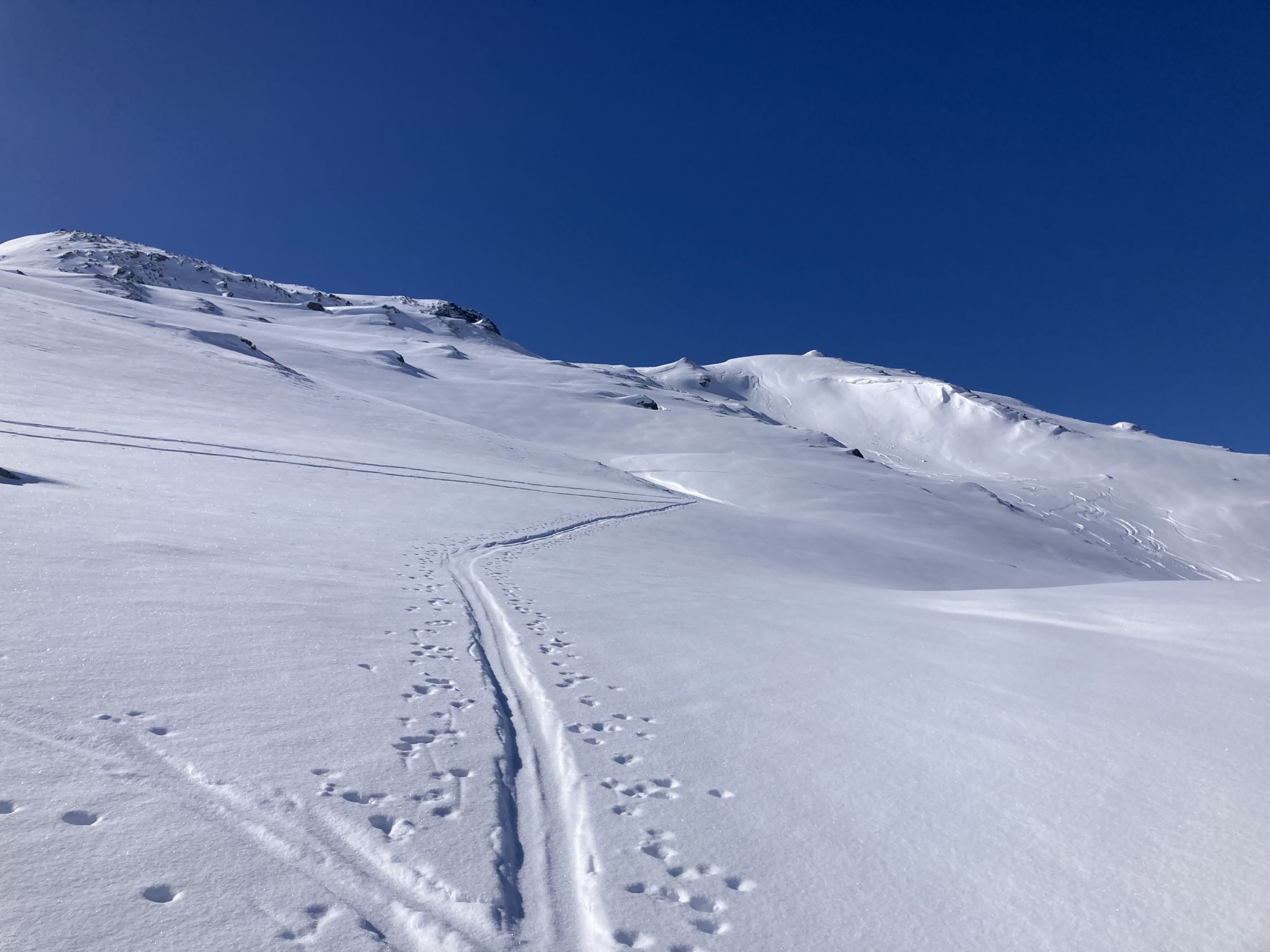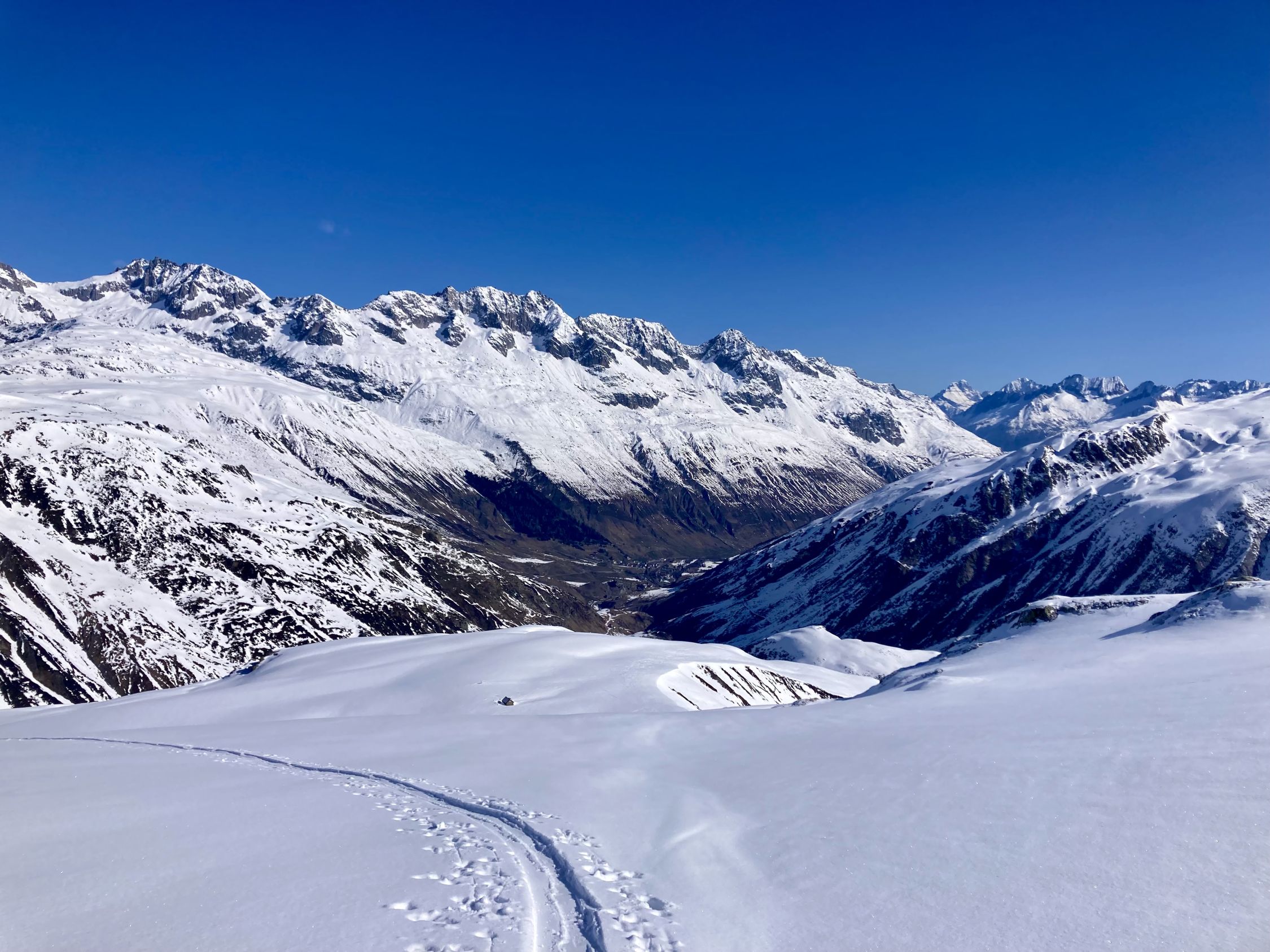 Ab Realp muss relativ lange zu Fuss gegangen werden und auch noch weiter oben in den Kurven, müssen die Ski's 2-3 mal abgezogen werden und ein kurzes Stück auf dem Asphalt steigen, da kein Schnee mehr. Ansonsten top Schneeverhältnisse, sogar noch leichter Pulver wegen den tiefen Temparaturen.