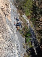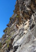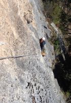SL9: Hart für den Grad und anstrengend. Hier muss man einmal vom Haken wegklettern (nach R).