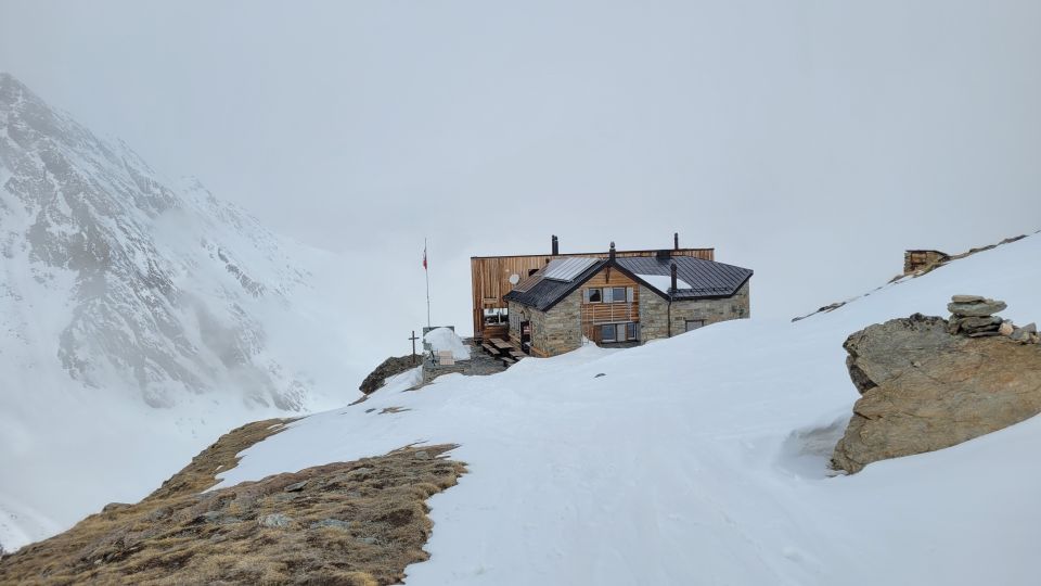 Täschhütte bewartet, heute voll, Alphubel und Rimpfischorn gem. Hüttenwart gut.