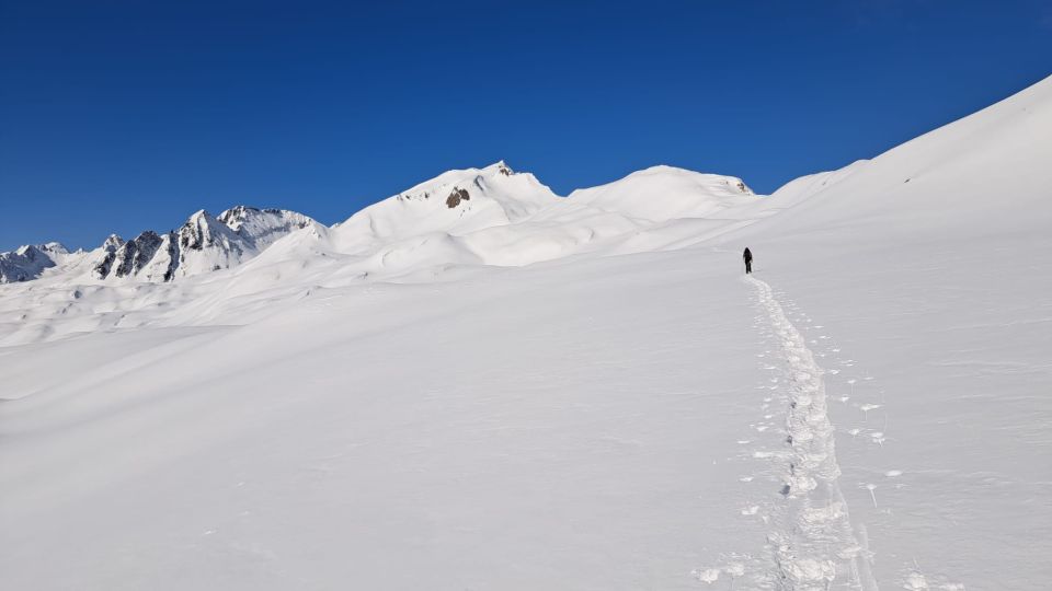 Am Morgen unten harte Verhältnisse, ab ca. 2‘000m Pulverschnee. Am Nami im unteren Teil weich.