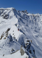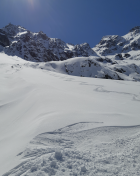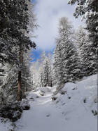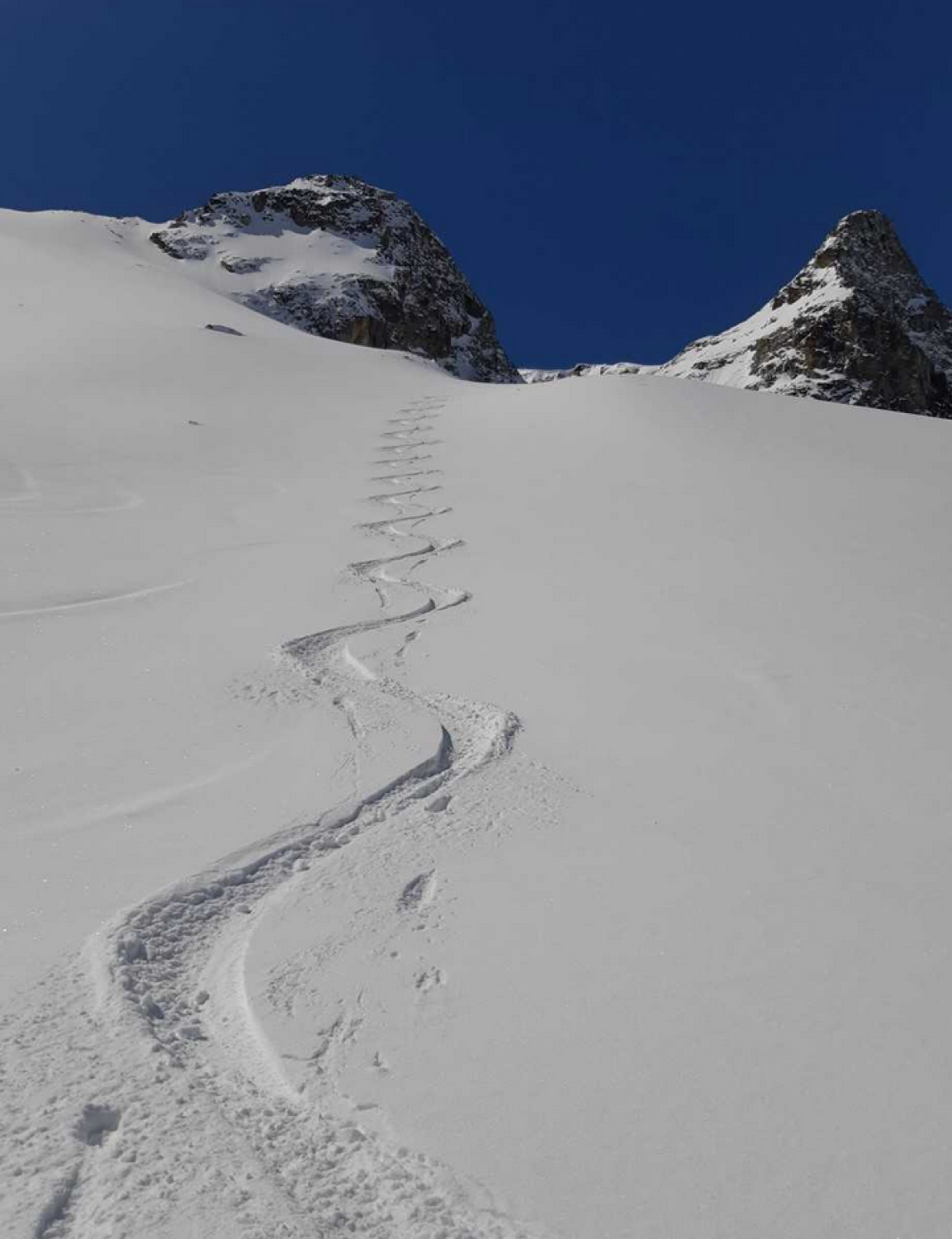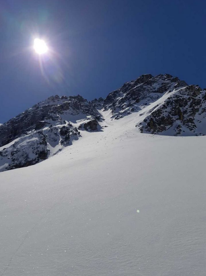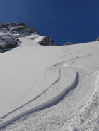 Geheimtipp für Ostermontag !! Heute herrschten bereits direkt ab Naz (Ausgangspunkt) beste Verhältnisse. Der Holweg durch den Wald ist im Aufstieg sehr gut zu gehen, bei der Abfahrt sind 3-4 kurze Stellen, wo es sich anbietet, die Ski zu tragen. Es hatte die letzten Tage geschneit und damit eine herrliche Winterkulisse ins Val Mulix gezaubert. Aufstieg über den Grat zum Gipfel sehr gut machbar (alles Pulverschnee ohne Eis) ein Pickel und Steigeisen sind für die Sicherheit nicht schlecht - es ging bei mir heute auch ohne und nur mit Skistecken. Wobei ich meine Spur deutlich unter der Südflanke zur Hälfte des SW-Grates hinaufzog. Abfahrt bot mir herrlichsten Pulverschnee. Bis auf die 2-3 Engstellen der Tour noch viel Platz für freie Schwünge im Tiefschnee. Ab ca 2.300 abwärts wurde der Neuschnee um ca 12:00 Uhr dann schon etwas feucht. Insgesamt die einzige 5-Sterne Tour bei diesen Verhältnissen in diesem Winter. Danke Osterhase !! :-)