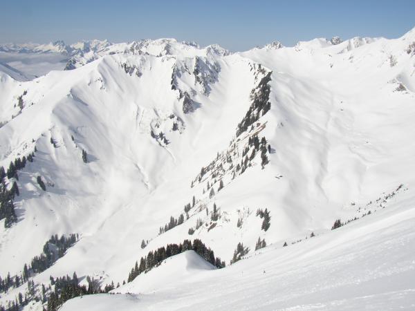 Untere Gantrischhütte,Morgetenpass,Schibespitz P.2060m,Abfahrt Flösch,durch kessel talberg zur Alp Mittelberg.Aufstieg über Wannenhütte,durch den steilen Südhang der Schiterwand auf den Chrummenfadenfluh Ostgipfel P.2079.Abfahrt nach P.1960m östlich der Stubenfluh.Aufstieg Hohmad P.2075m.Die Abfahrt direkt rechts neben der Hohmadhütte in das sehr steile Couloir hinunter bis zur Alp Blattenheid P.1433m.Wiederaufstieg durch den Haberhang P.1853m auf den Fädi Hauptgifel P.2074.Abfahrt Gustiberghütte,kleiner gegenanstiegGirisberg,Obernünenenhütte Wasserscheide dann noch entlang der Hauptstrasse zur Unteren Gantrischhütte zurück.